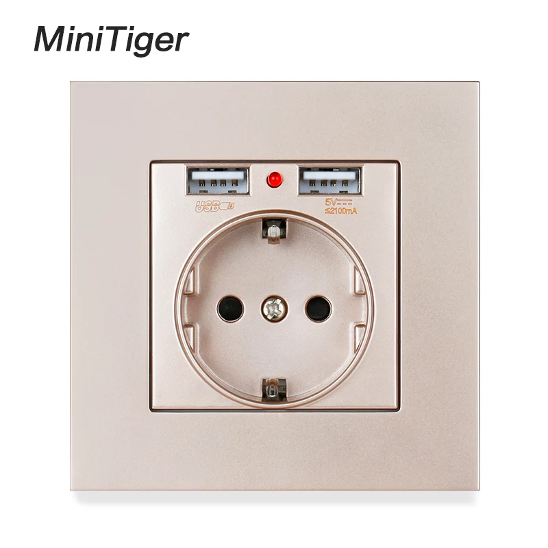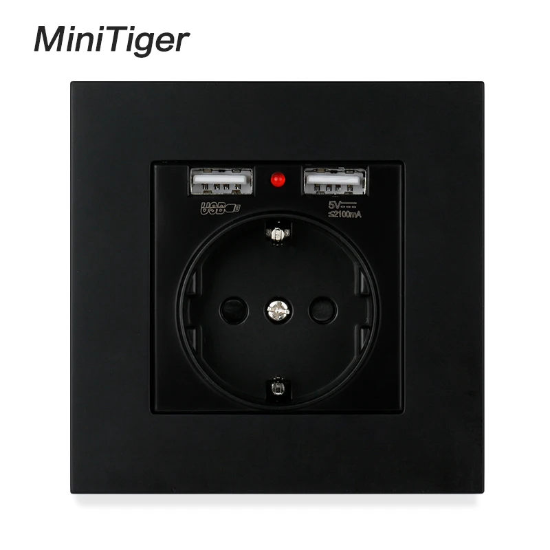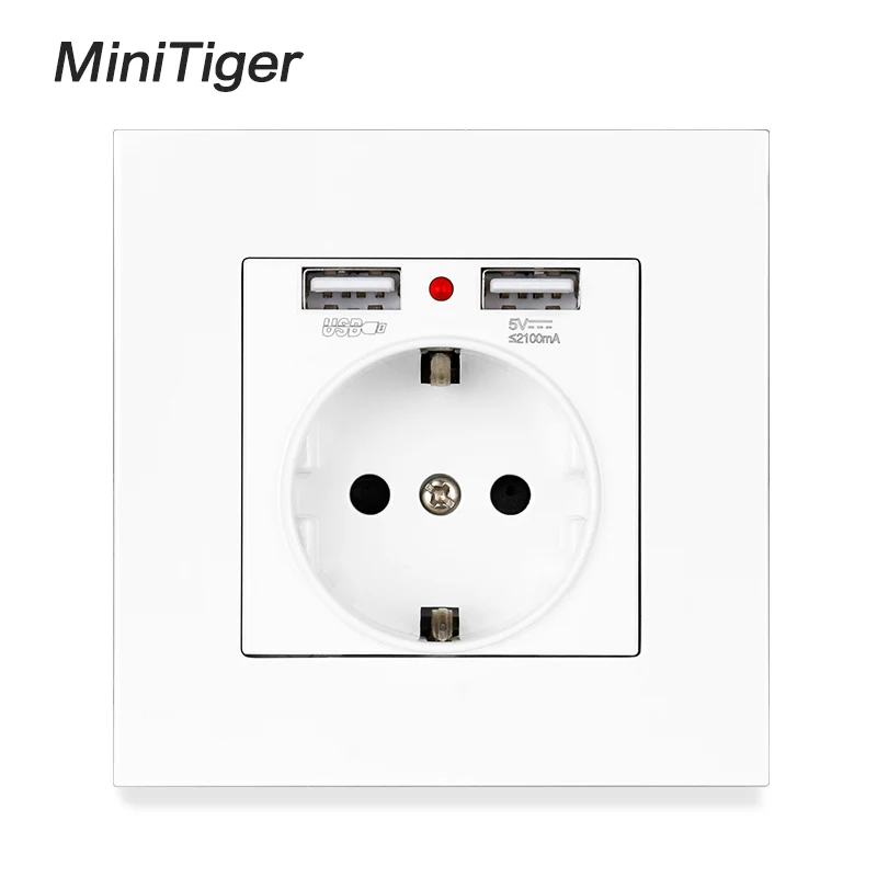 MiniTiger двойной USB порт для зарядки 5 в 2.1A настенное зарядное устройство адаптер со светодиодным индикатором 16A розетка европейского стандарта розетка ПК Панель