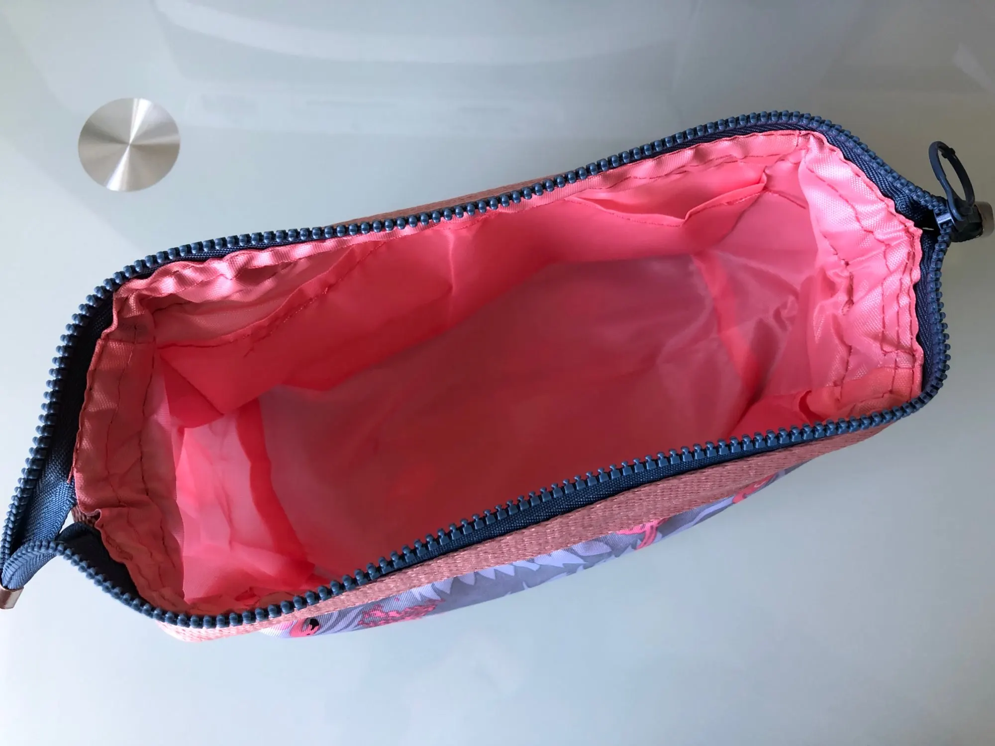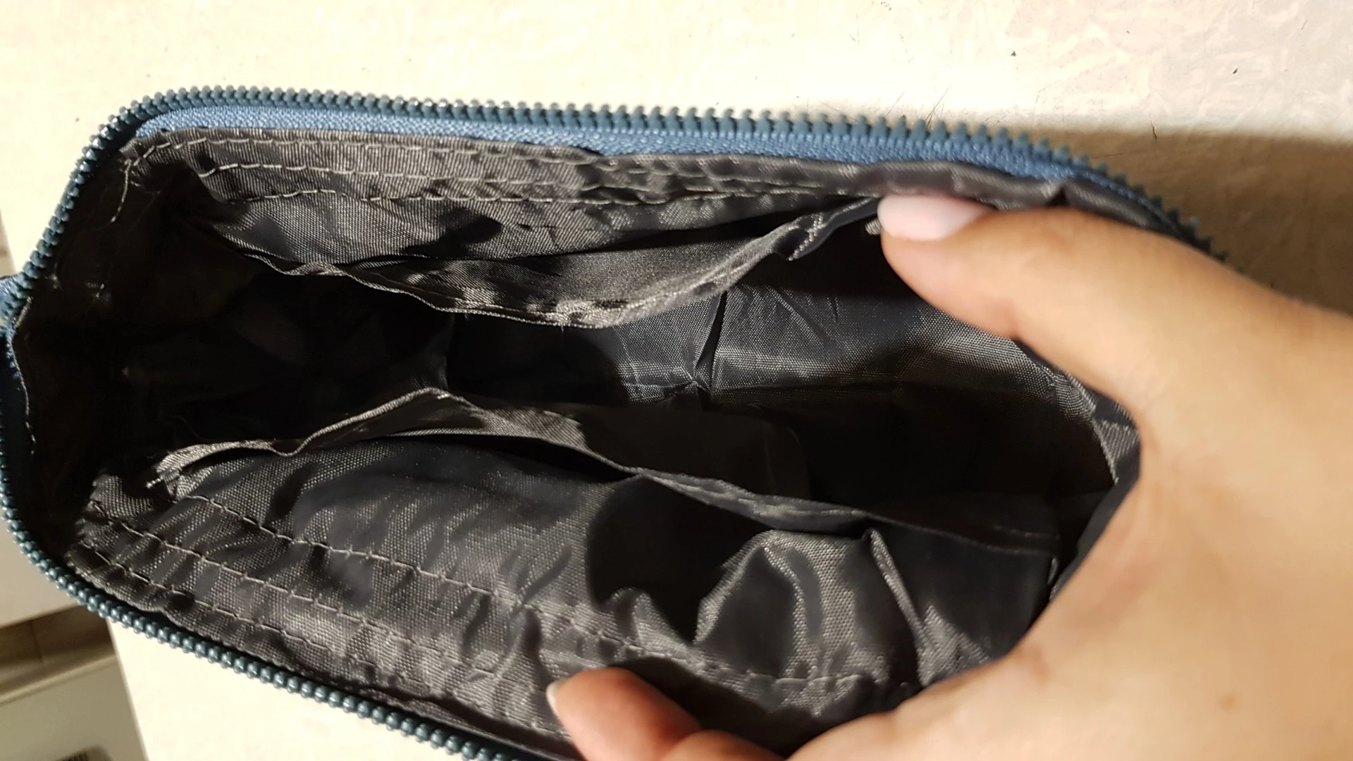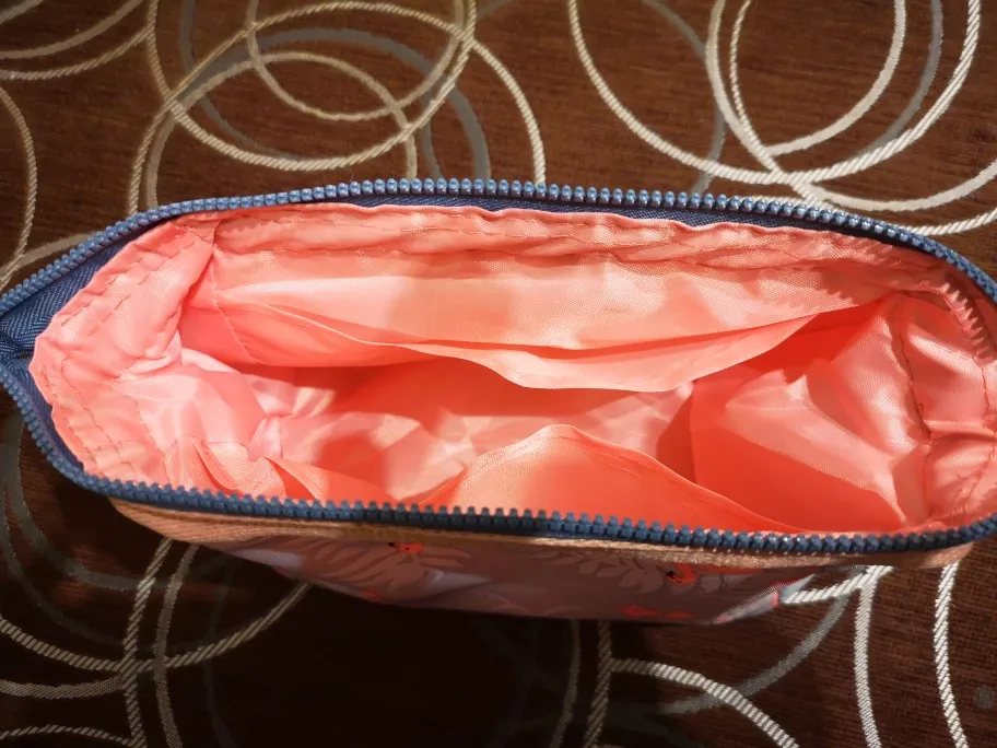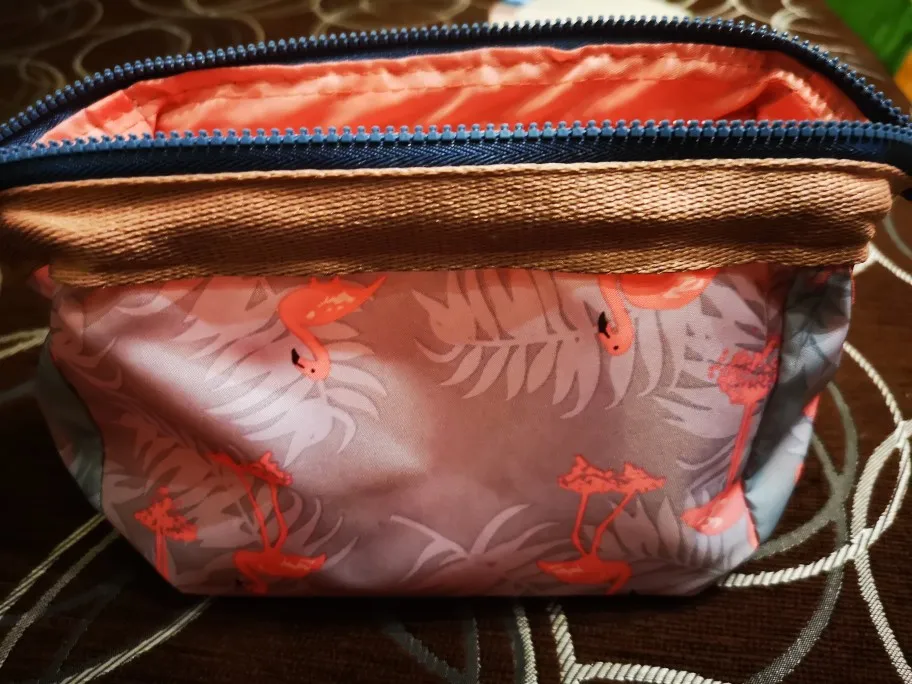 хорошая косметичка, единственное, как то грубовато смотрится, пришитая сверху лента и маленький брак в строчке, поэтому снижаю звезду. доставили быстро, меньше месяца