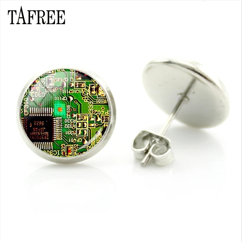 Серьги-гвоздики TAFREE с компьютерной печатной платой, лидер продаж, серебряные серьги для мужчин и женщин, модное искусство, фото, поклонники, подарки, ювелирные изделия QF01