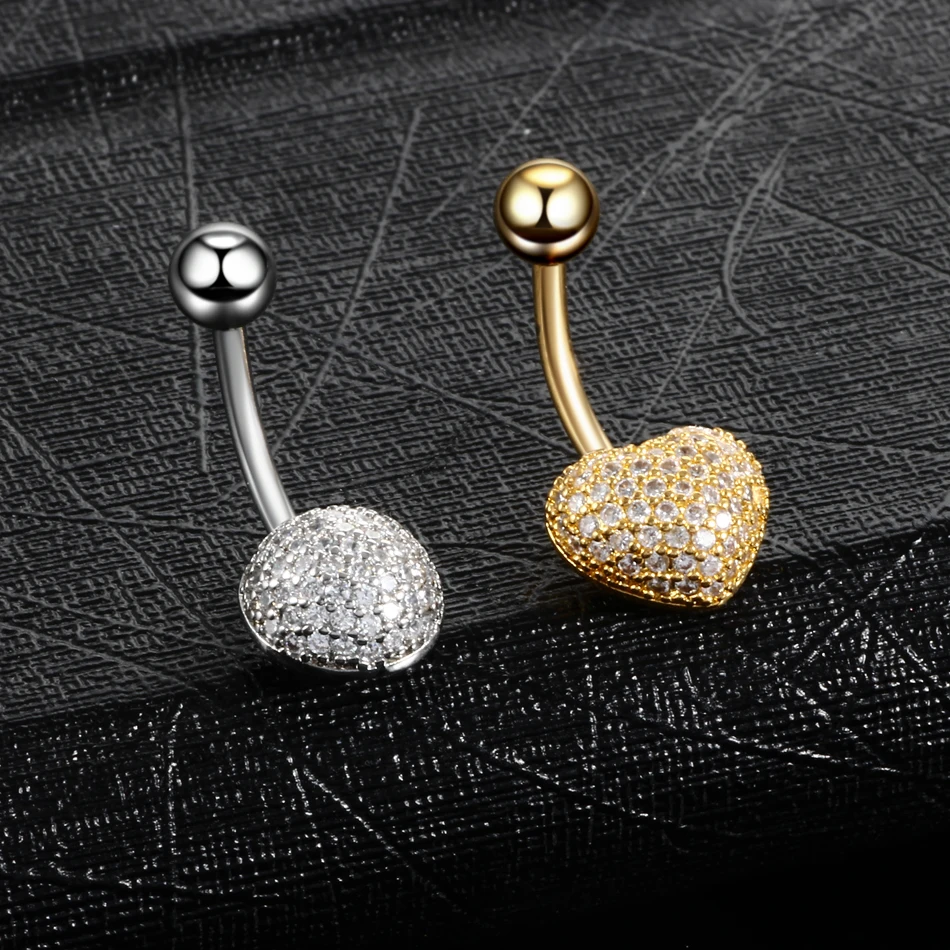 Серьга-подвеска для пирсинга Ombligo, сердце для пупка из стали 14 г, с блестящими аксессуар для пирсинга пупка, ювелирные изделия для пирсинга тела, 1 шт.