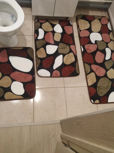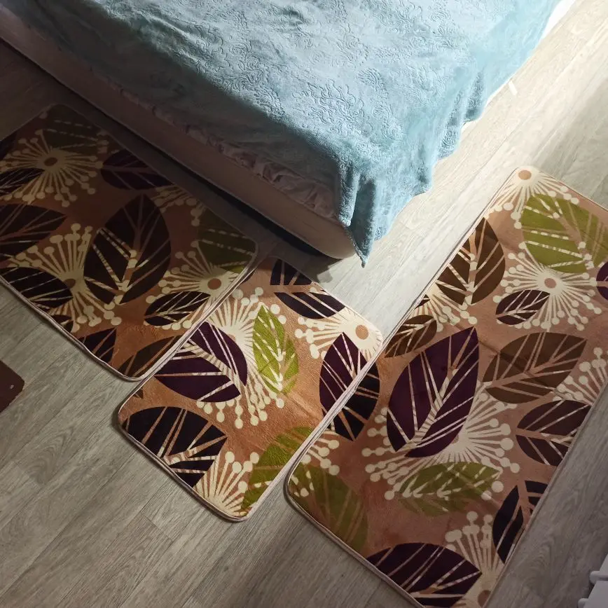 коврики просто волшебные, мягкие, ногам очень приятно, красивые. без постороннего запаха. не скользят.