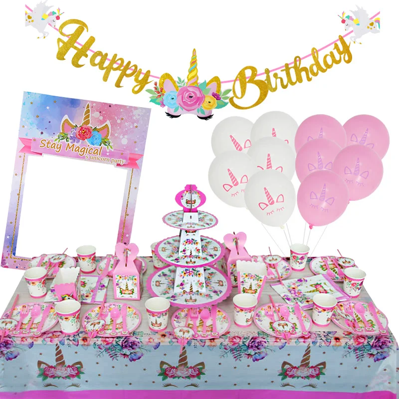 Набор одноразовой посуды в виде единорога для детского дня рождения