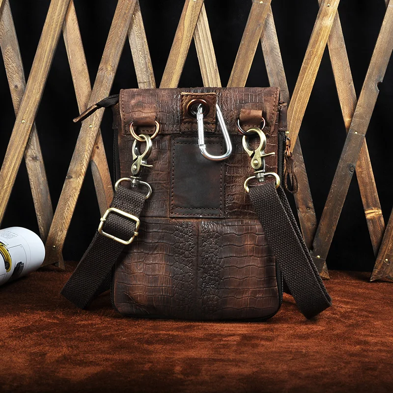 Оригинальный кожаный мужской повседневный дизайн многофункциональная маленькая сумка через плечо дорожная модная поясная сумка для планшета 611-1-c