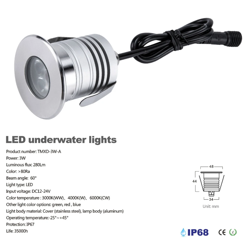 1. Широко используемый светодиодный подводный светильник 3 Вт, эквивалентный 18-22 Вт лампе накаливания с IP68, такой как светильник для бассейна, фонтанный светильник, светильник для дорожек, садовый светильник, мостовой светильник и другой уличный светильник Venus ing
