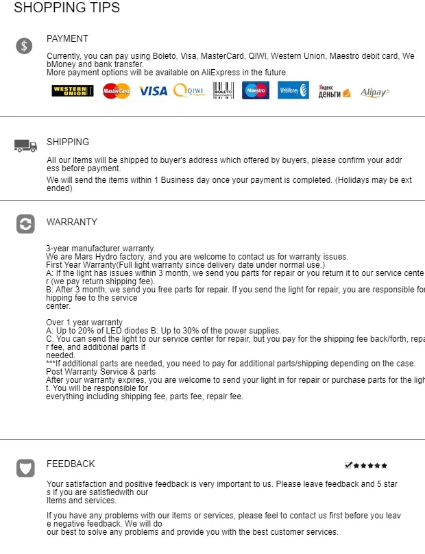 MarsHydro Official Store - Надежность 93%