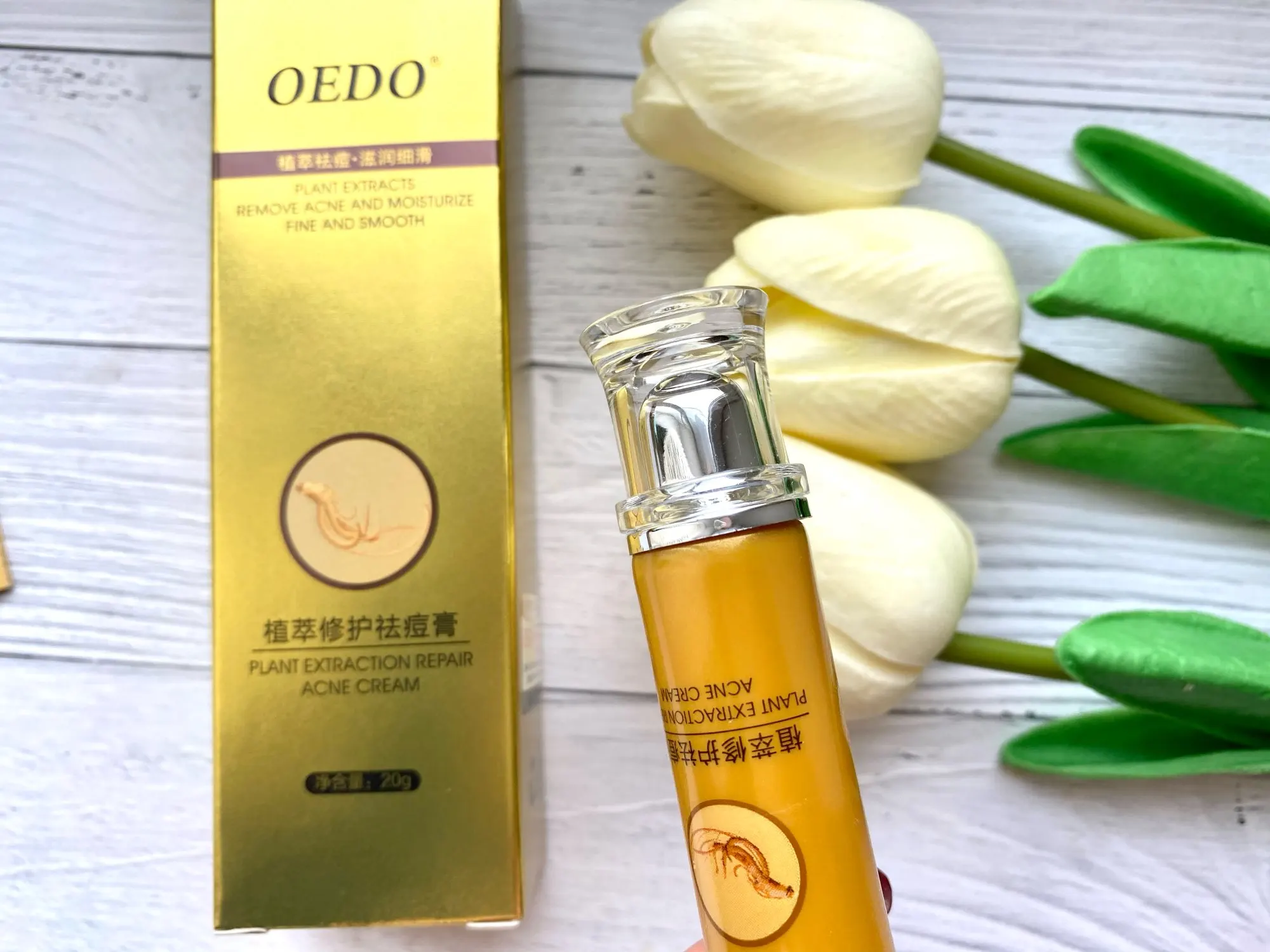 Крем от прыщей с экстрактами растений На упаковке информация на китайском и английском языке, есть состав, срок годности до 2023г. Крем в миниатюрном тюбике с прозрачной крышкой, масса 20 грамм. У крема травяной запах. Крем наношу точечно, на воспаления. В среднем у меня уходит чуть меньше недели чтобы покраснение прошло и остаётся небольшое пятнышко (постакне),которое со временем становится практически не видно. Но это также требует времени и обязательно уход за кожей(крем+маска 1-2раза в неделю) Подходит для всех типов кожи. Доставка 1,5 месяца до Урала.
