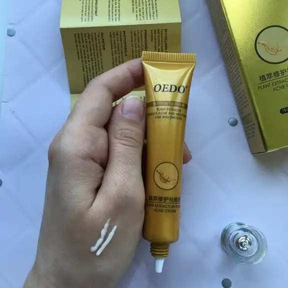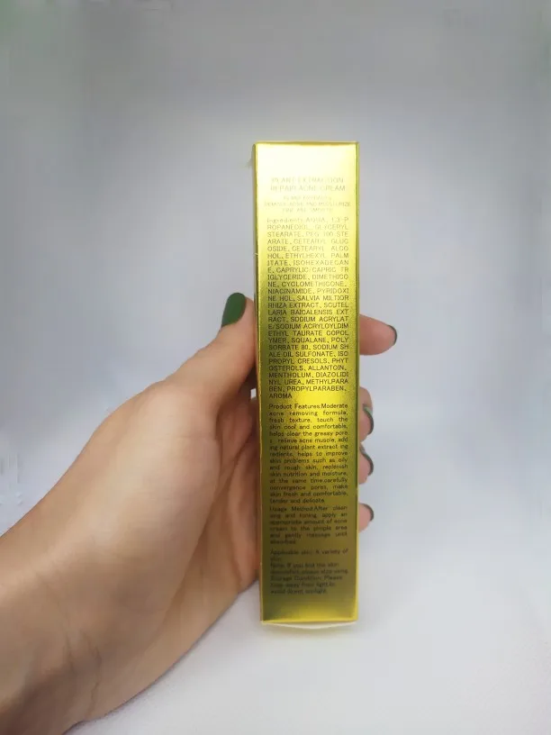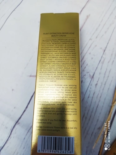 Данный крем заказываю повторно. Крем не только против угрей, но и против морщин, прыщей, шрамов на основе трав. Доставка быстрая, был упакован в картонную коробочку, пупырчатую пленку. Сам тюбик также был упакован в фирменную коробочку, которая запаяна слюдой. На упаковке имеется наклейка сертификации, подтверждающая подлинность продукта, описание средства, состав и способ применения на китайском и английском языках, и срок годности. В коробочке кроме тюбика, ещё отдельно был вкладыш, где написано способ применения и для чего сам крем. Тюбик - 20 г., был хорошо закрыт. Данный тюбик удобный в использовании. Само средство белого цвета, со слабым запахом трав. При нанесении немного чувствуется охлаждённый эффект. Раздражения или аллергию не вызвал, но кожа у каждого разная, поэтому конечно же перед использованием протестируйте на запястье.