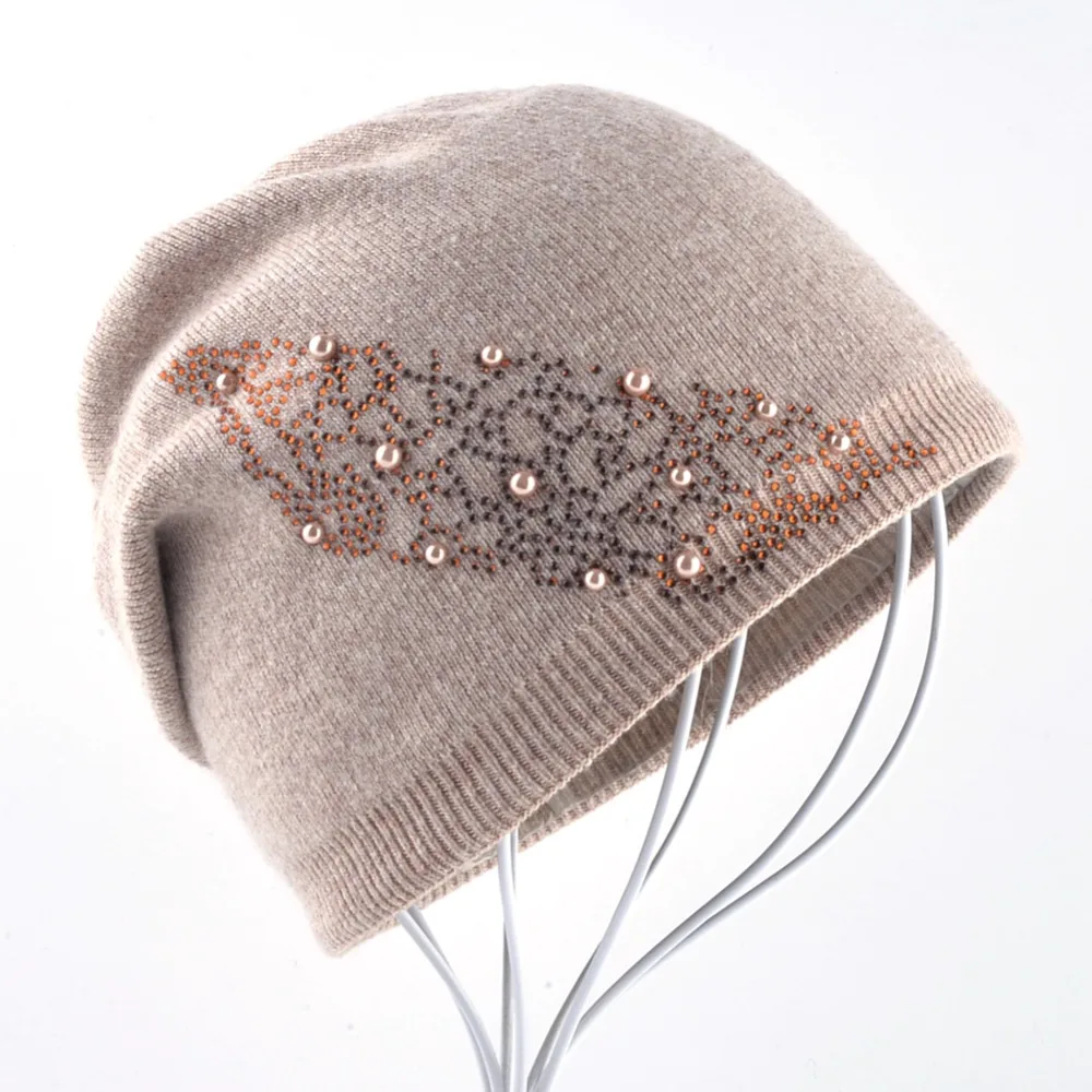 Модный вязаный шапка женская со стразами шапка зимняя женская теплая шапка из ангоры женская элегантная шапка кролик шапочка