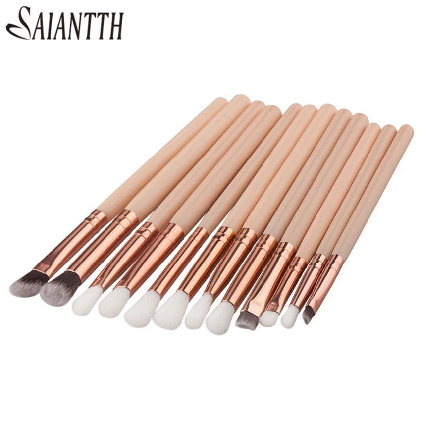 SAIANTTH 12 шт. набор кистей для макияжа глаз, набор инструментов для макияжа, набор туалетных принадлежностей, шерсть, бренд pincel maleta de maquiagem, тени для носа, подводка для губ