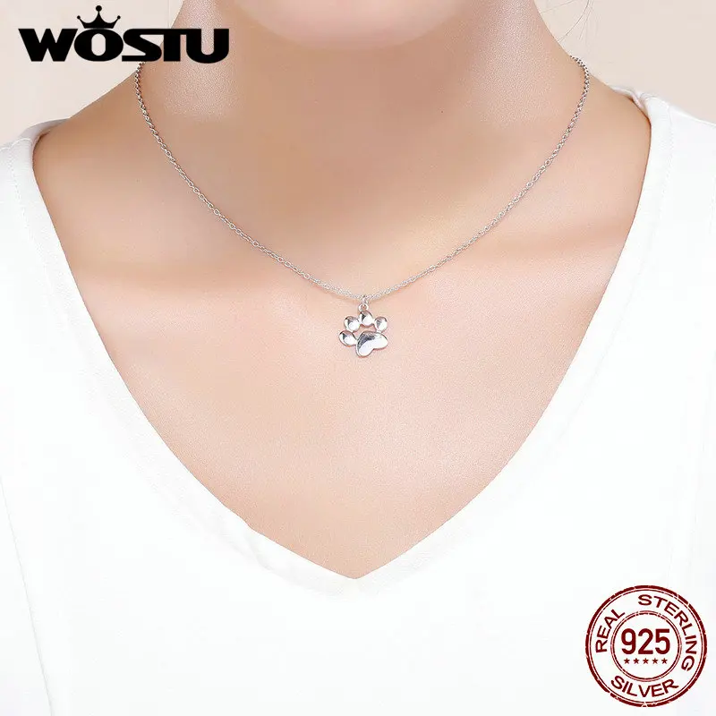 WOSTU высокое качество 925 серебро симпатичная собака следы соединительное звено Подвеска Ожерелье для женщин девушка прекрасный подарок ювелирные изделия CQN275