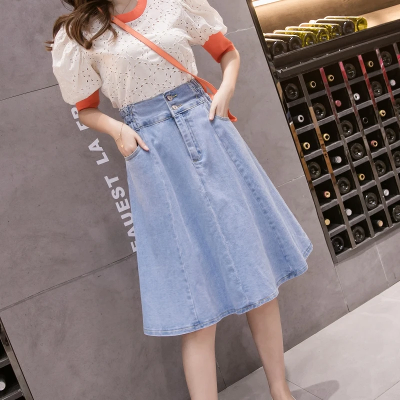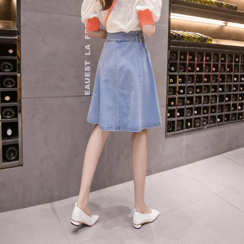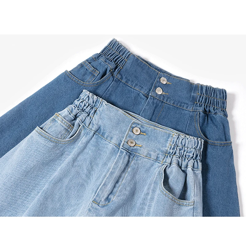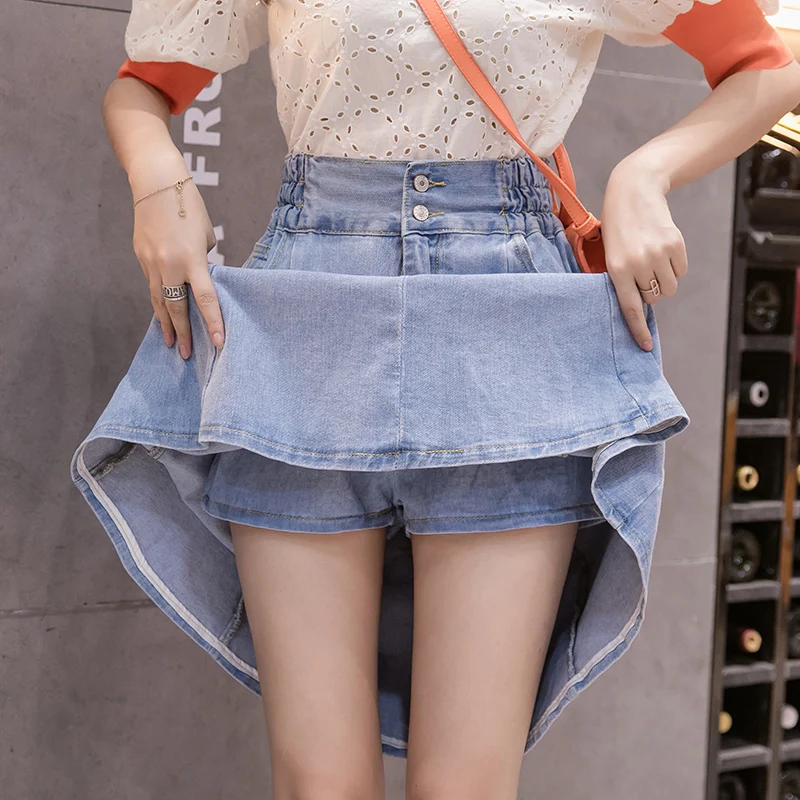 Женские джинсовые шорты, с завышенной талией, плиссированные джинсовая юбка однотонное платье трапециевидной формы с уличная джинсовая мини-юбка размера плюс эластичные студенческого свитер юбки