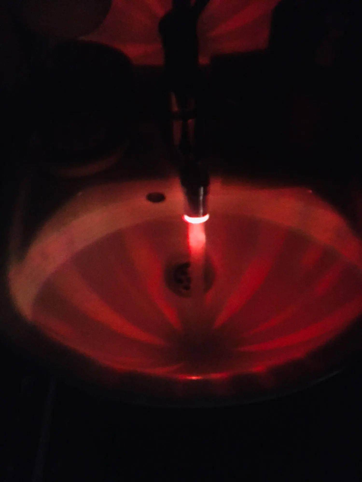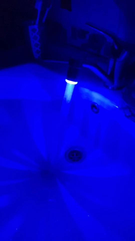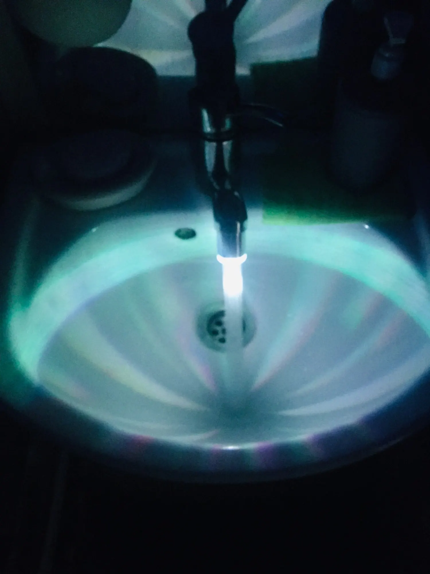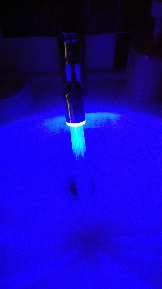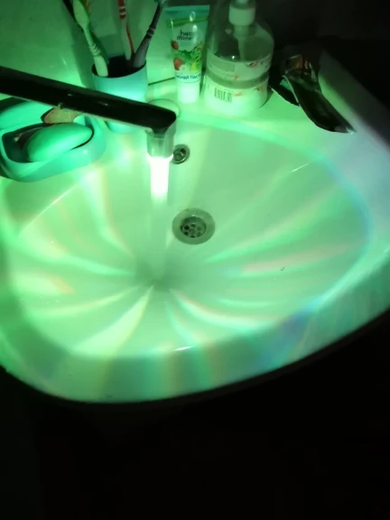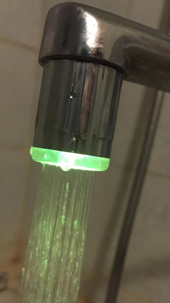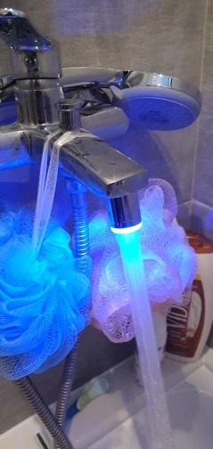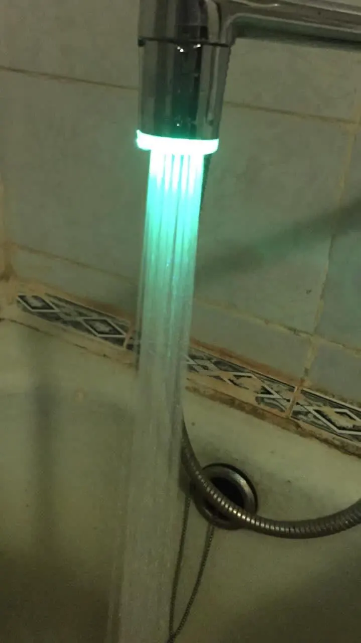 прикольная штучка ,горит разными цветами в зависимости от напора воды горит ярче