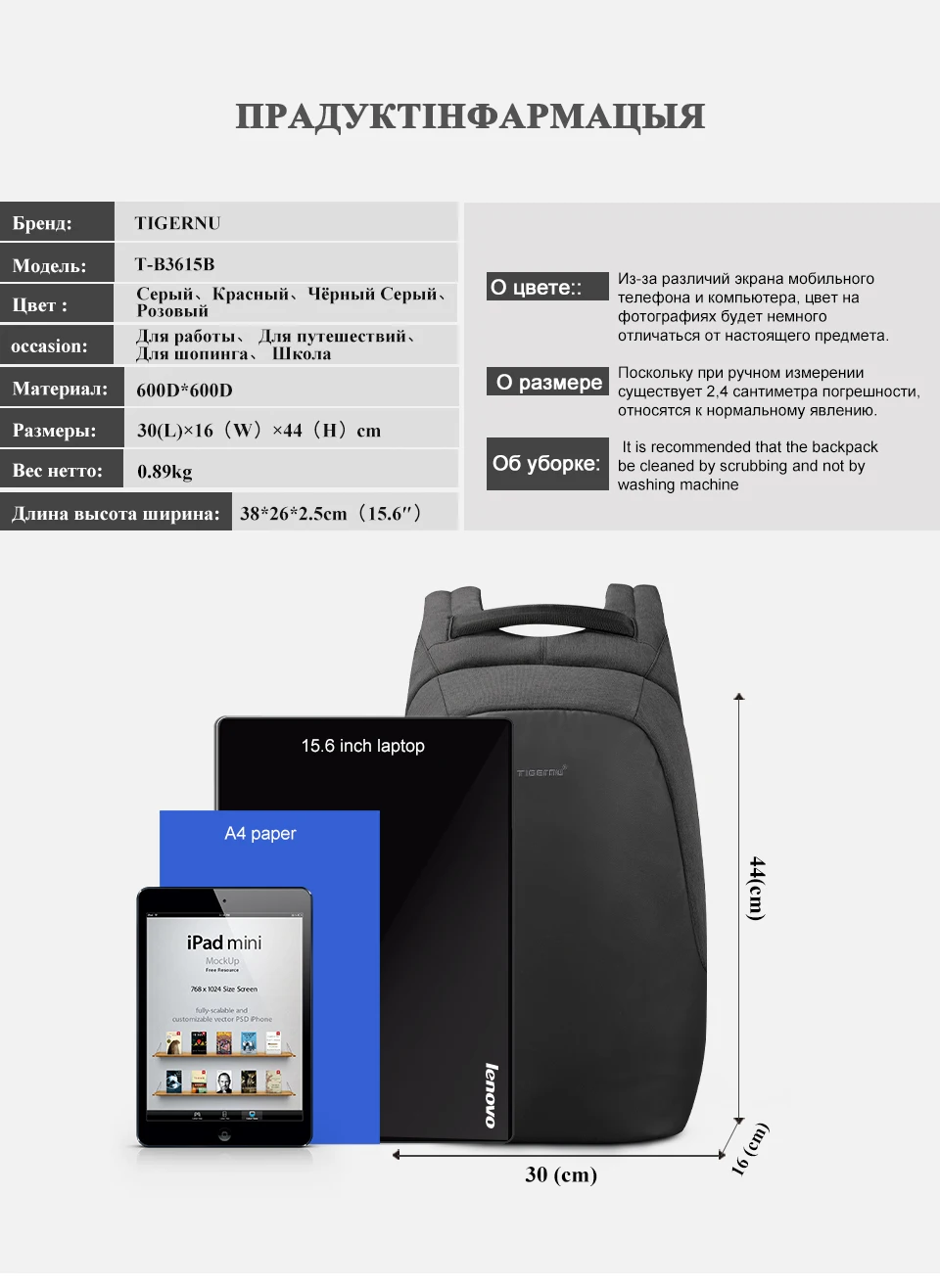От бренда Tigernu для мужчин и женщин Анти-кражи рюкзак для 15,6 "Сумка для ноутбука повседневные Путешествия брызг рюкзаки школьные сумки для подростков мальчиков и девочек