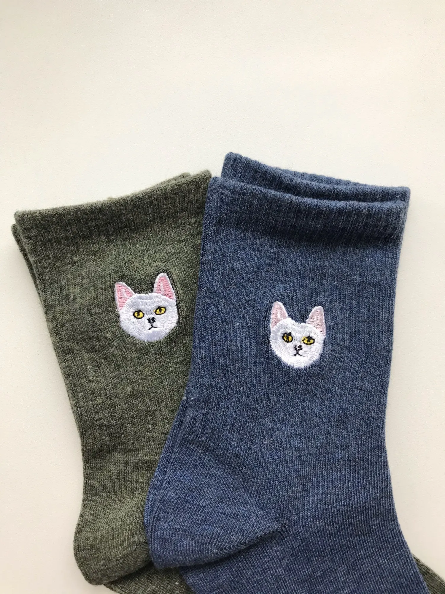 Теплые носки в стиле Харадзюку, милые женские носки с вышивкой в японском стиле, новые хлопковые носки, забавные носки для животных