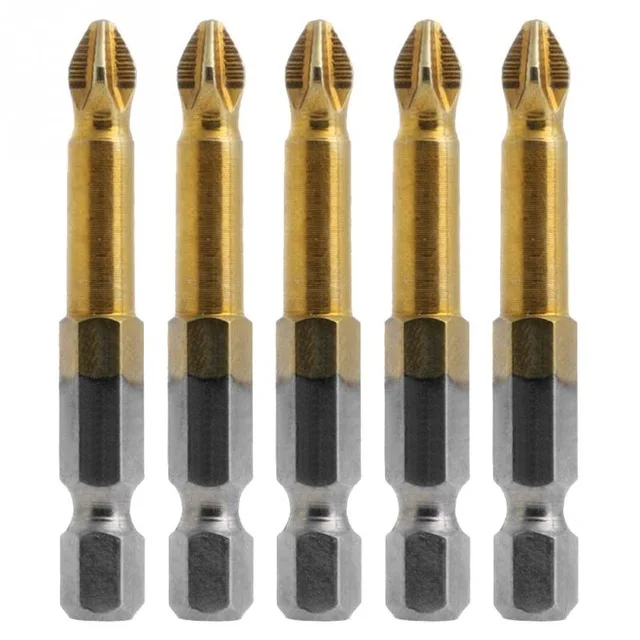 1 компл. (5 шт.) шестигранный хвостовик 14 дюйма PH2 с титановым покрытием, длина 50 мм, противоскользящие биты для электрической отвертки с магнитным наконечником