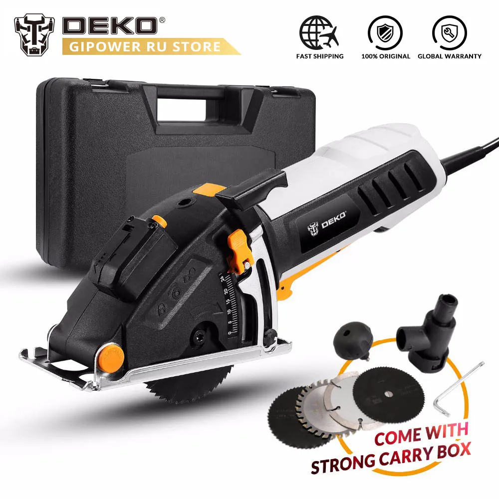 Электрическая циркулярная пила DEKO Mini, с лазерной направляющей, 4 лезвия, проход пыли, шестигранный ключ, вспомогательная ручка, коробка BMC