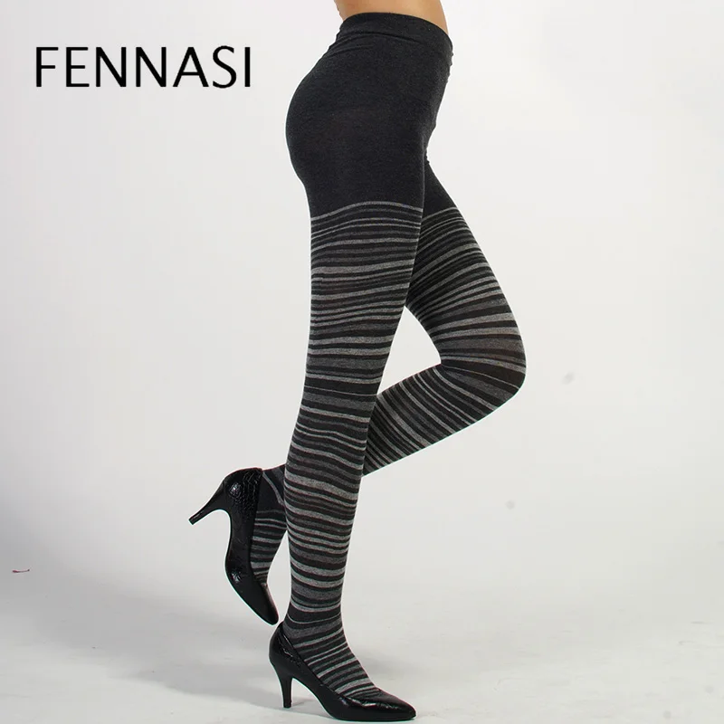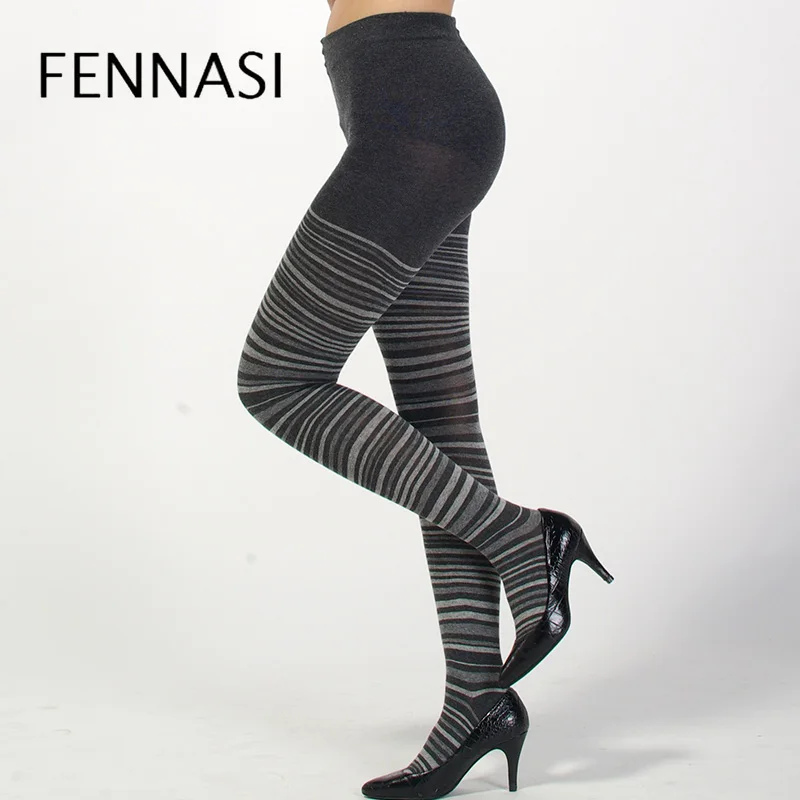 Женские леггинсы с высокой талией FENNASI, размера плюс хлопковые плотные теплые штаны в полоску, повседневные брюки с эффектом пуш-ап для зимы