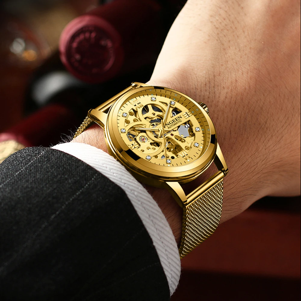 FNGEEN автоматические механические сетчатые мужские часы, мужские ч...