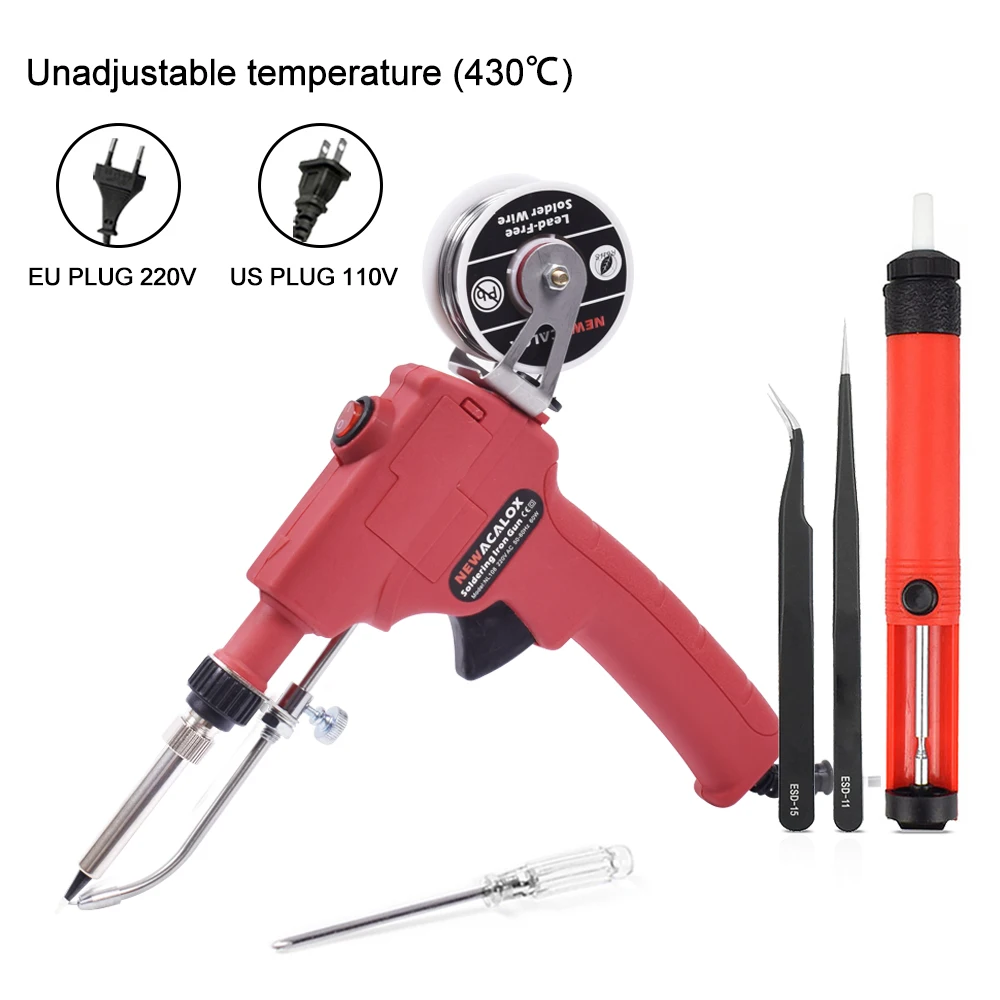 Ручной паяльник NEWACALOX, вилка стандарта ЕССША, мощность 60 Вт, быстрый нагрев, автоматическая подача оловянного пистолета, для сварки печатных плат и ремонта, припой с проводом 1 мм