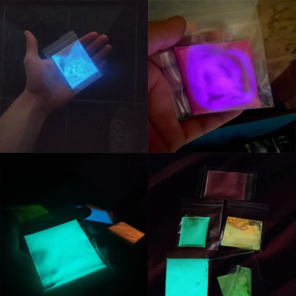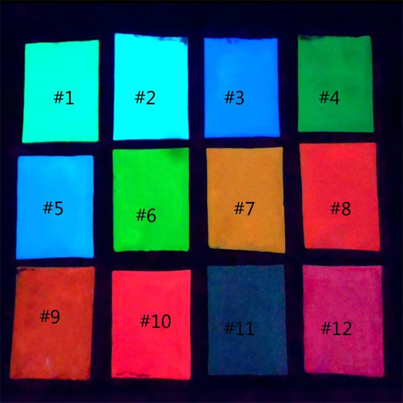 10 г светящийся в темноте порошок люминесцентный Пигмент высокая яркость люминесцентный порошок, светящийся в темноте порошок пигмент, 12 видов цветов