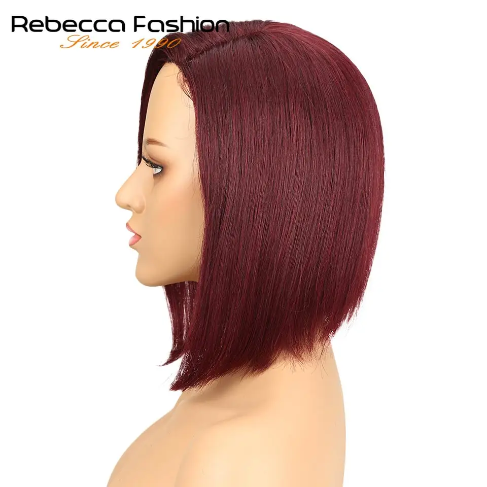 Парики из натуральных волос Rebecca короткие, с эффектом деграде, разноцветные, для чернокожих женщин, с левой частью, перуанские прямые волосы Реми, бесплатная доставка