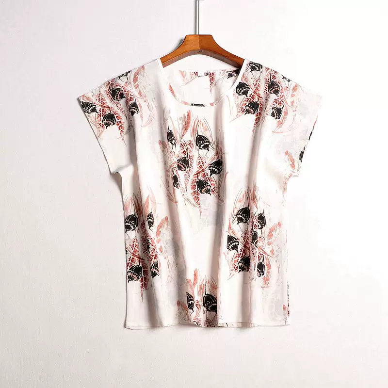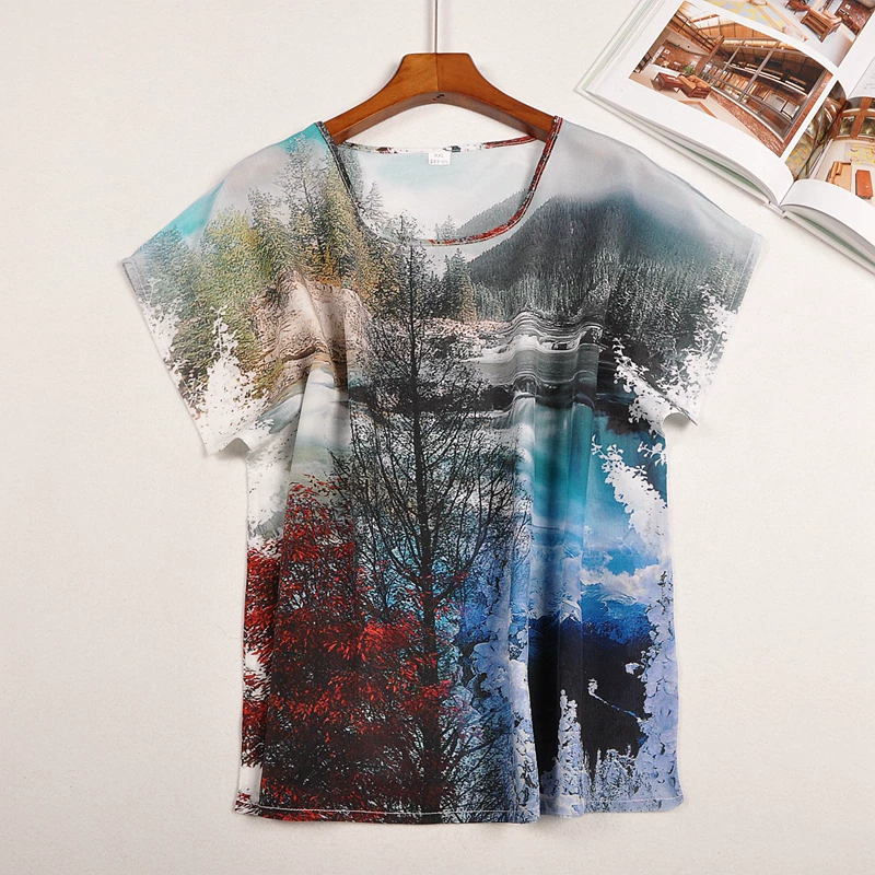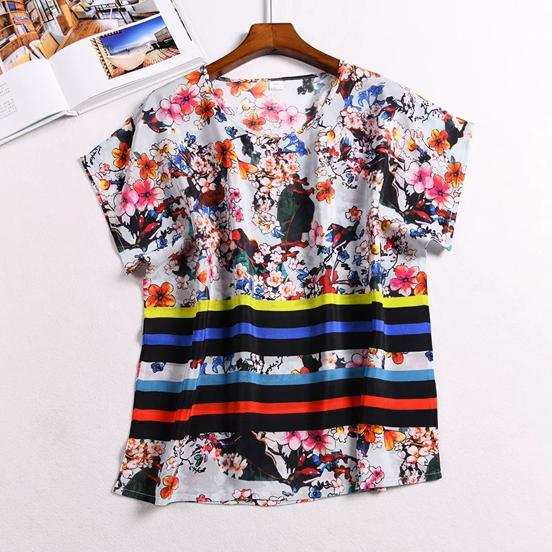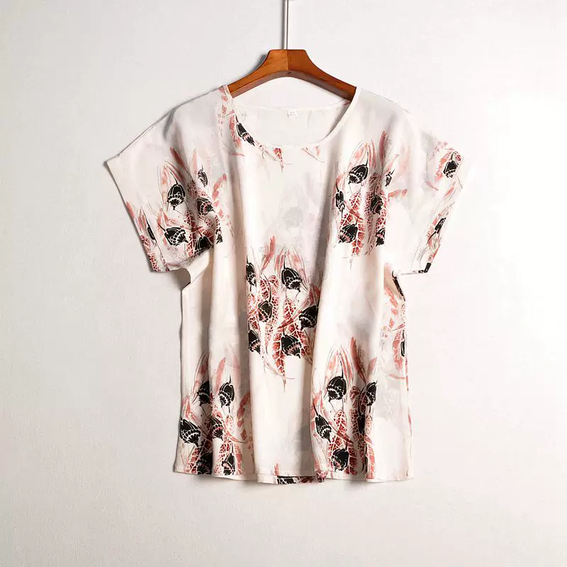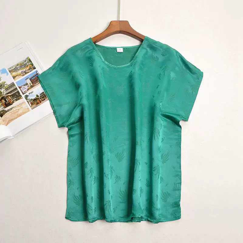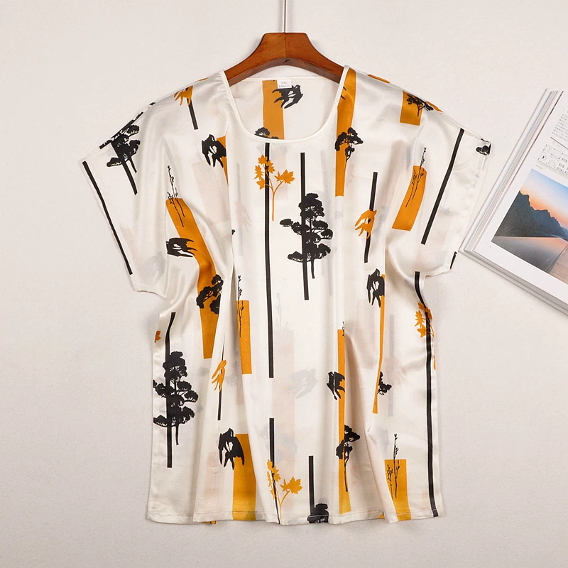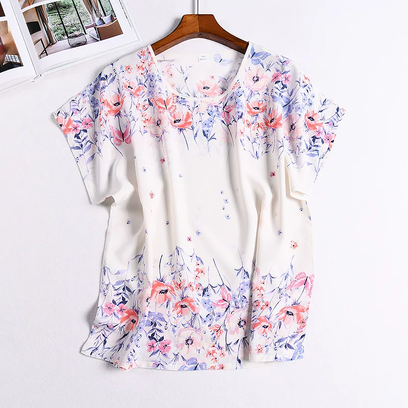 Блузка из 100% шелка, размера плюс, с рукавами реглан, с коротким рукавом, одежда из 100% натурального шелка