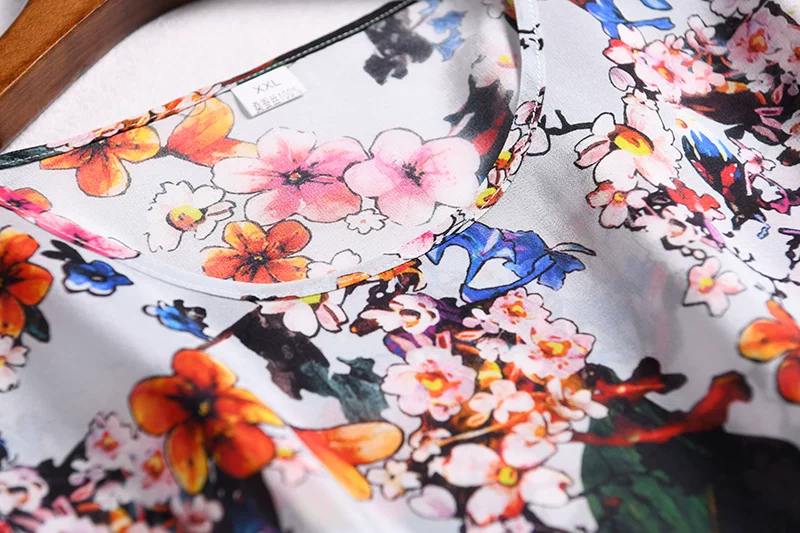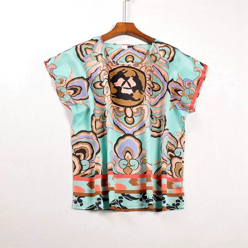 Блузка из натурального шелка наивысшего качества! Испытание на горение было сделано, если даже было трудно найти свободную нить). Для моего 94-70-98 сидит свободно. Длина блузки 60 см, прямая форма, Ширина низа 108 см, рукава реглан 103 в подмышках. MINUSES: Там нет ярлыка; 2-очень низкая раскатка спереди, 7 см от воротника в моем чехле. Но в целом блузка красивая и легкая с ярким принтом. Спасибо продавцу! Я рекомендую!