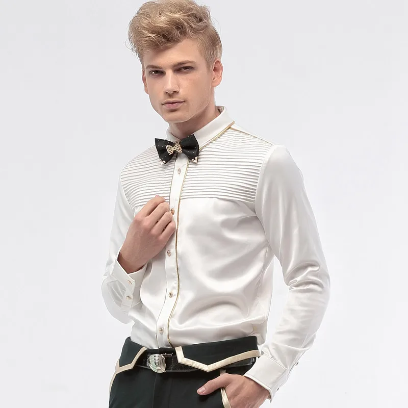 Мужская Облегающая рубашка FANZHUAN, белая плиссированная рубашка с длинным рукавом