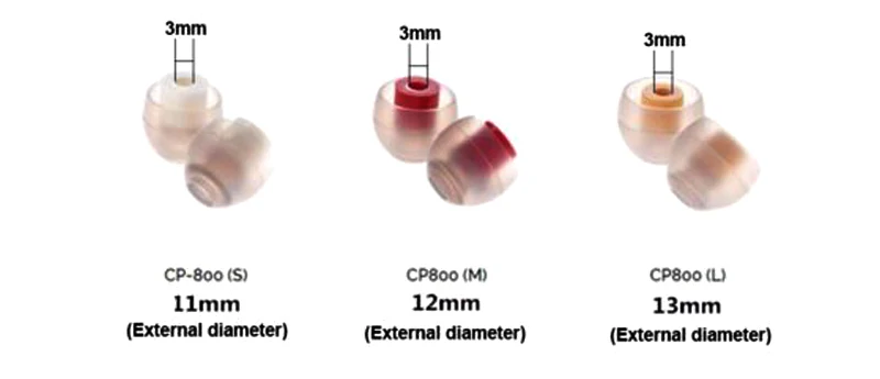 CP800-M Как описано, выглядит хорошо и хорошо работает с Shure 525/846 и Etymotic ER4-PT's. Примечание: в прошлом я использовал множество подсказок, все размеры средние, но это определенно «маленькие середины». Выберите большой размер для среднего размера, подходящего для вашего уха