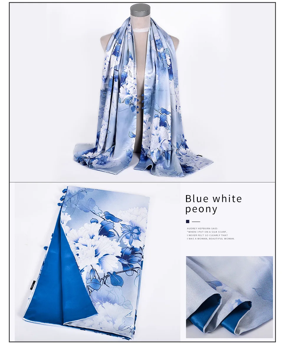 Женский длинный шарф с лотосом BYSIFA, серебристо-зеленый шелковый шарф, шаль, китайский винтажный шарф на пуговицах для весны и осени
