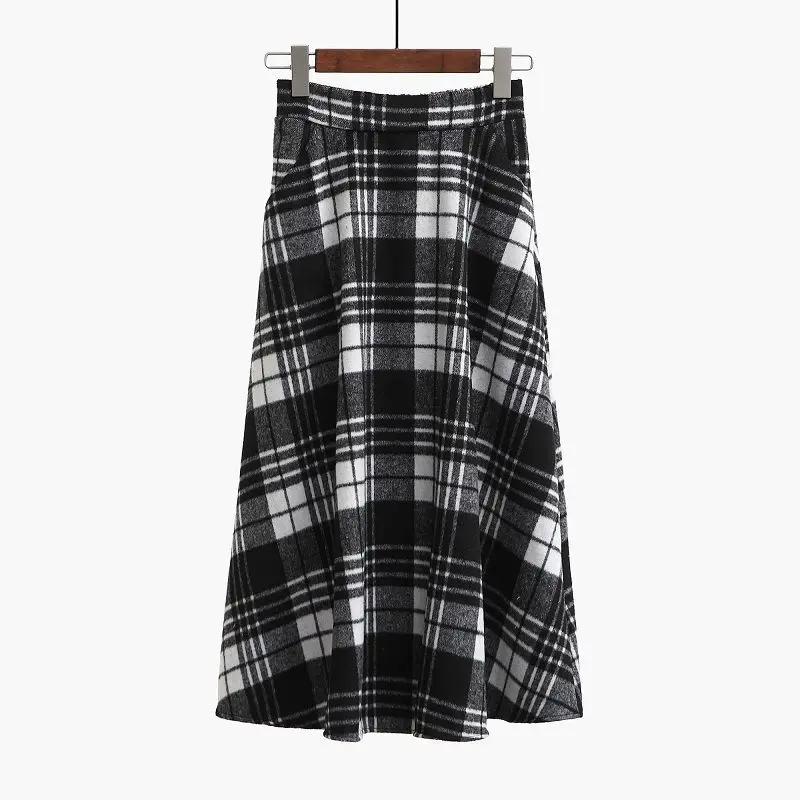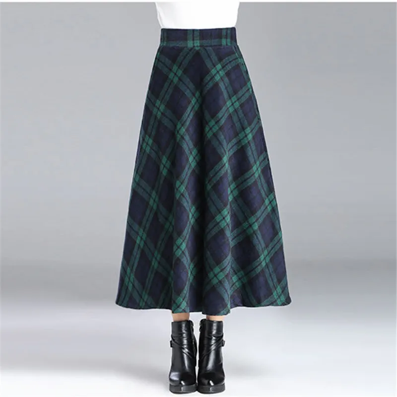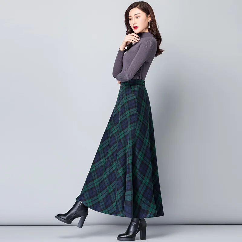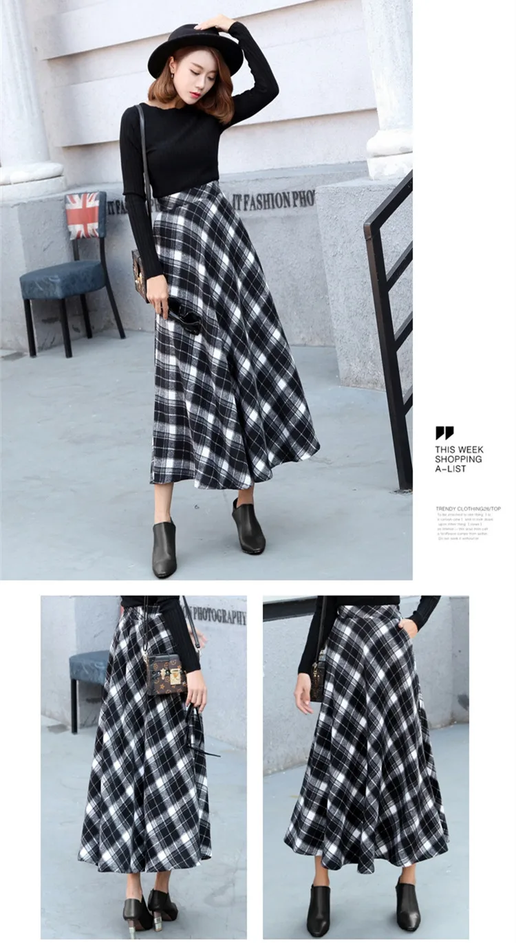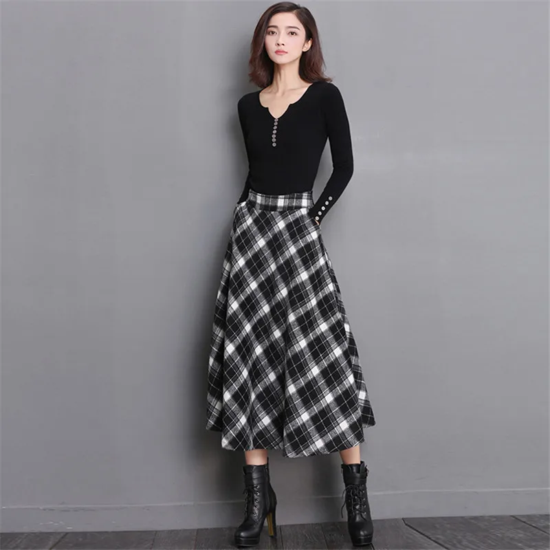 Женская Длинная шерстяная юбка в клетку, с высокой талией