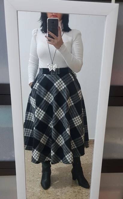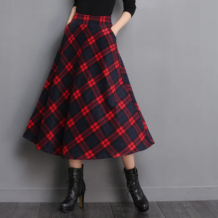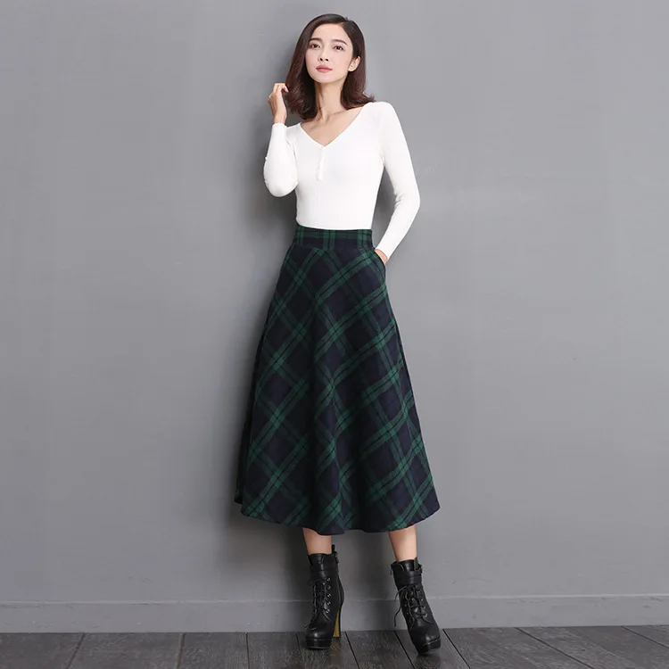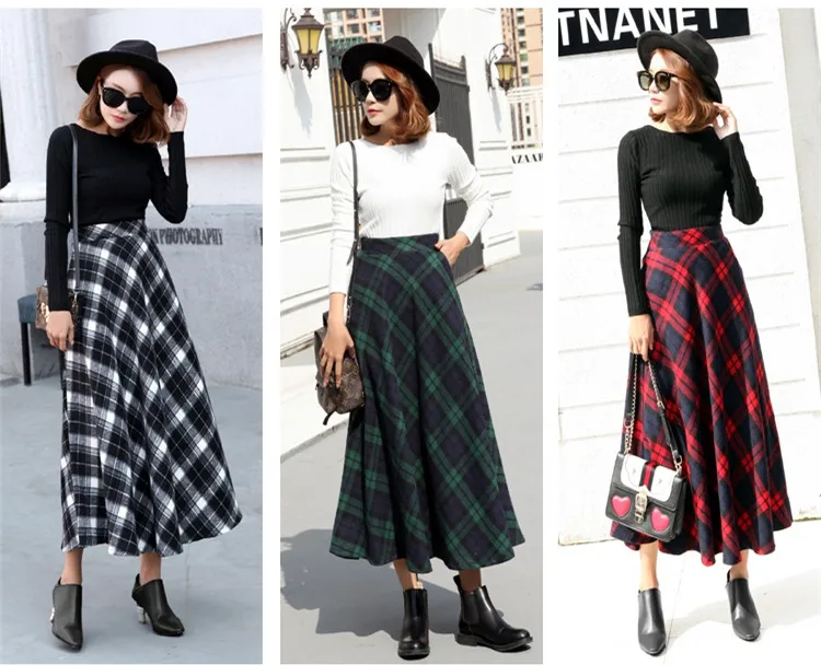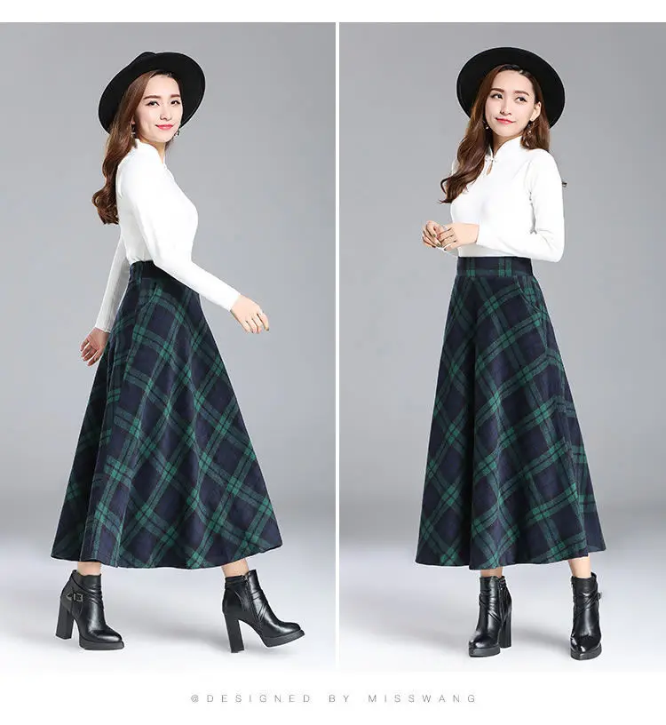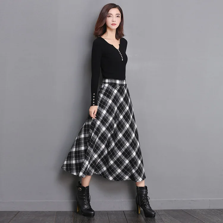 Женская Длинная шерстяная юбка в клетку, с высокой талией