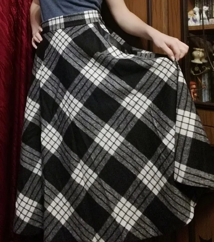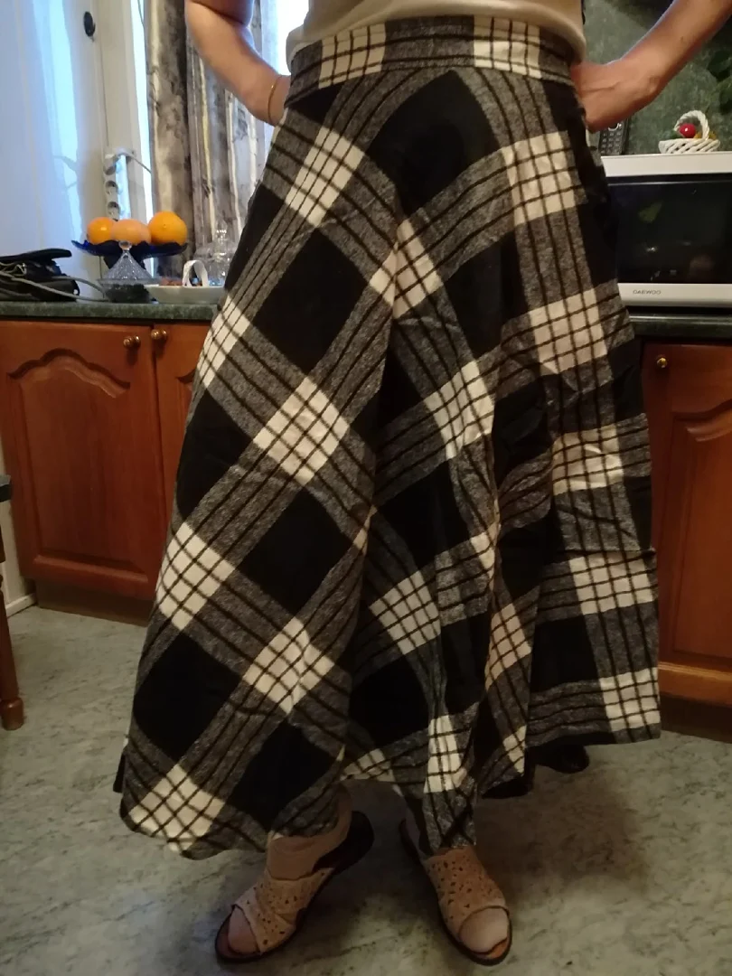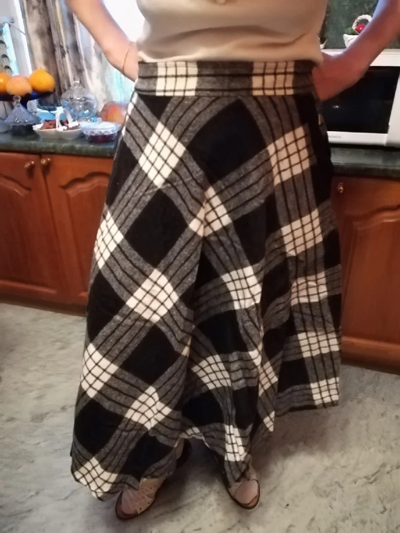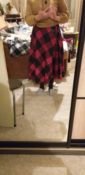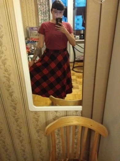 Заказ до Германии шёл почти полтора месяца . Юбки понравились. Материал вроде качественный ,приятный на ощупь, без всякого противного запаха . Надеюсь,что материал не скатается!Юбки на подкладе. Сшиты ,правда ,на "коленке",но справлению подлежат. У обеих юбок подол неровный. Переделала, и стало отлично.Заказывала 2 юбки- в чёрно-красную и чёрно-зелёную клетку.На мою талию 82 см, заказала 3ХL и 2XL. Разницу не почуствовала. Размер прямо как угадала ! Продавцу спасибо ! Всем здоровья и всех благ!