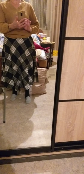 Очень красивая, тёплая и достаточно длинная юбка. Заказывала размер М. Сел идеально. Спасибо!