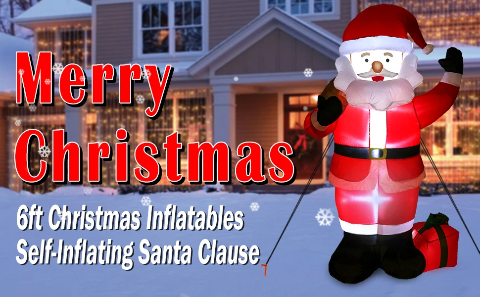 ❤Поставляется с 4 кольями и тросами для быстрой и легкой установки, а также 3 фиксированными водонепроницаемыми мешками, которые стоят без поддержки. Не нужно беспокоиться, что это украшение Санта-Клауса улетит от ветра.