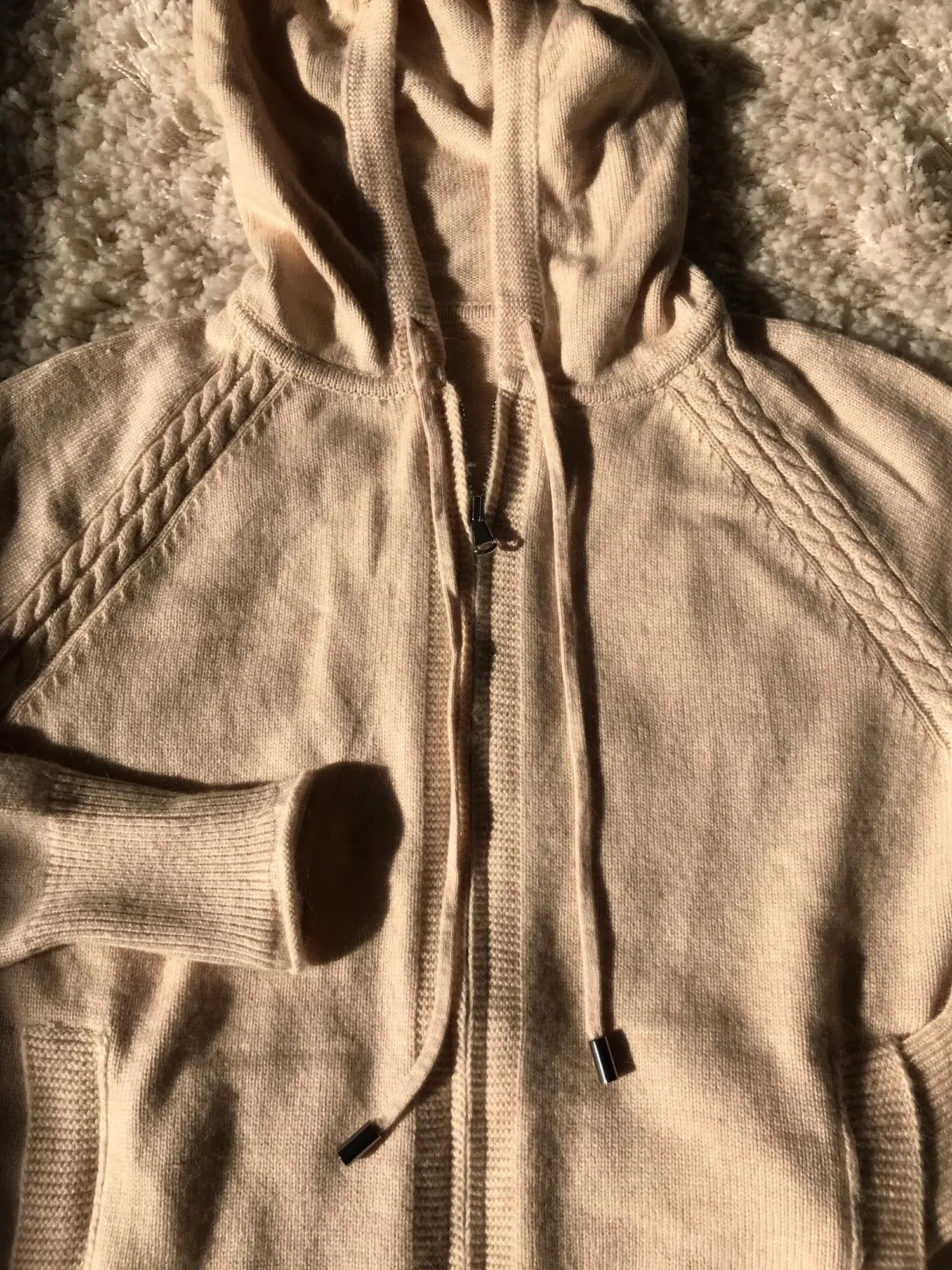 Amazing quality, worth the money spent! Very stylish and warm. Fits well, not baggy and at the same time not skin tight. I’m 168 height and 52kg, got size S. Color wise it’s a little pale for apricot, more of a cream.