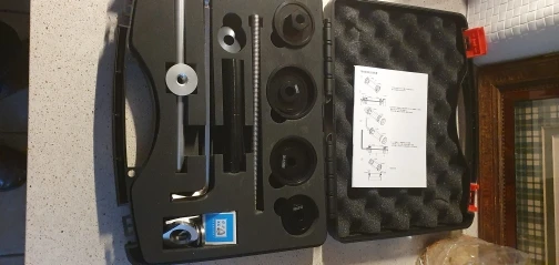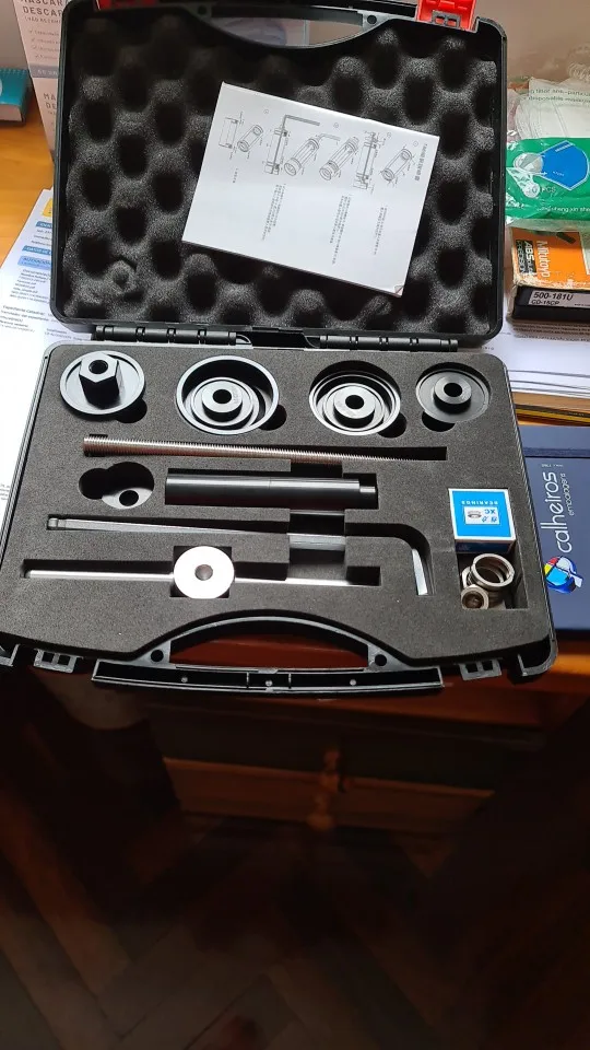Envio muy rapido. La herramienta funciona perfectamente tanto para extraer como para instalar los rodamientos. Lo he probado con un BB92 en una Cube LTD y sin ningún problema y ni un solo golpe.