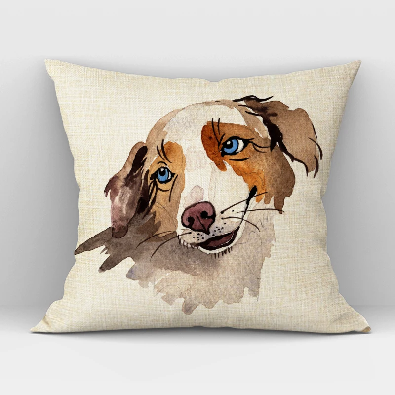 Новый дизайн льняная собака акварелью Almofadas обложки 45 см x 45 ...