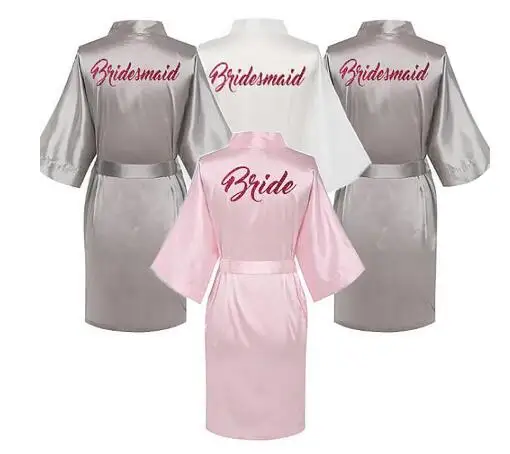 Халат для невесты, подружки невесты, красные буквы, халат, ночная рубашка, женское атласное свадебное кимоно, одежда для сна