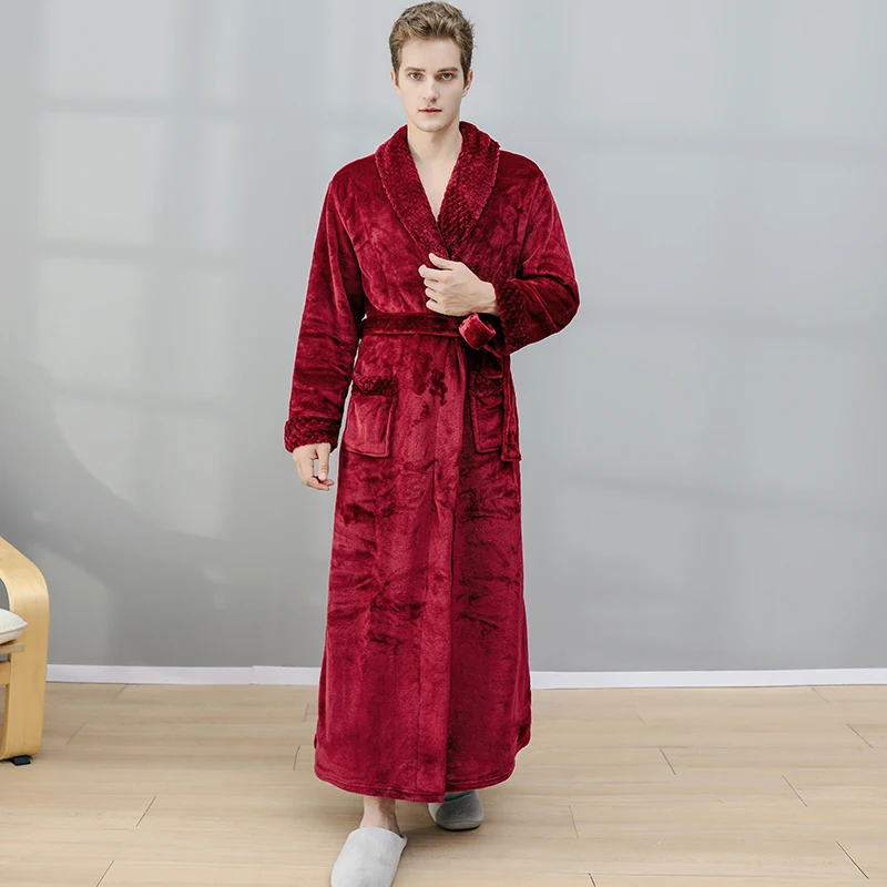 Женский и мужской удлиненный теплый фланелевый банный халат в сеточку, зимнее кимоно, роскошный термохалат, халат подружки невесты, ночная рубашка