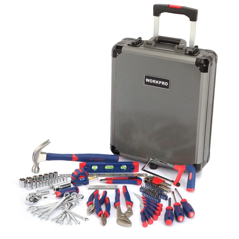 WORKPRO 111PC Тележка Чехол Набор инструментов алюминиевый ящик Набор домашних инструментов