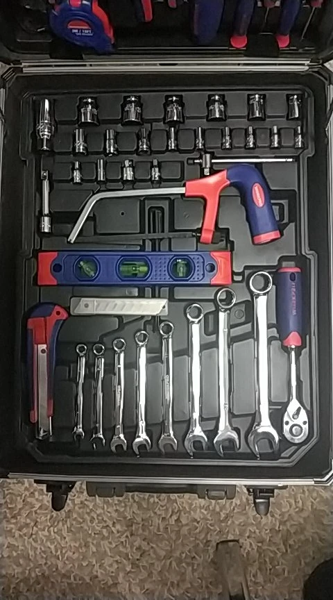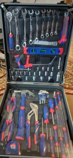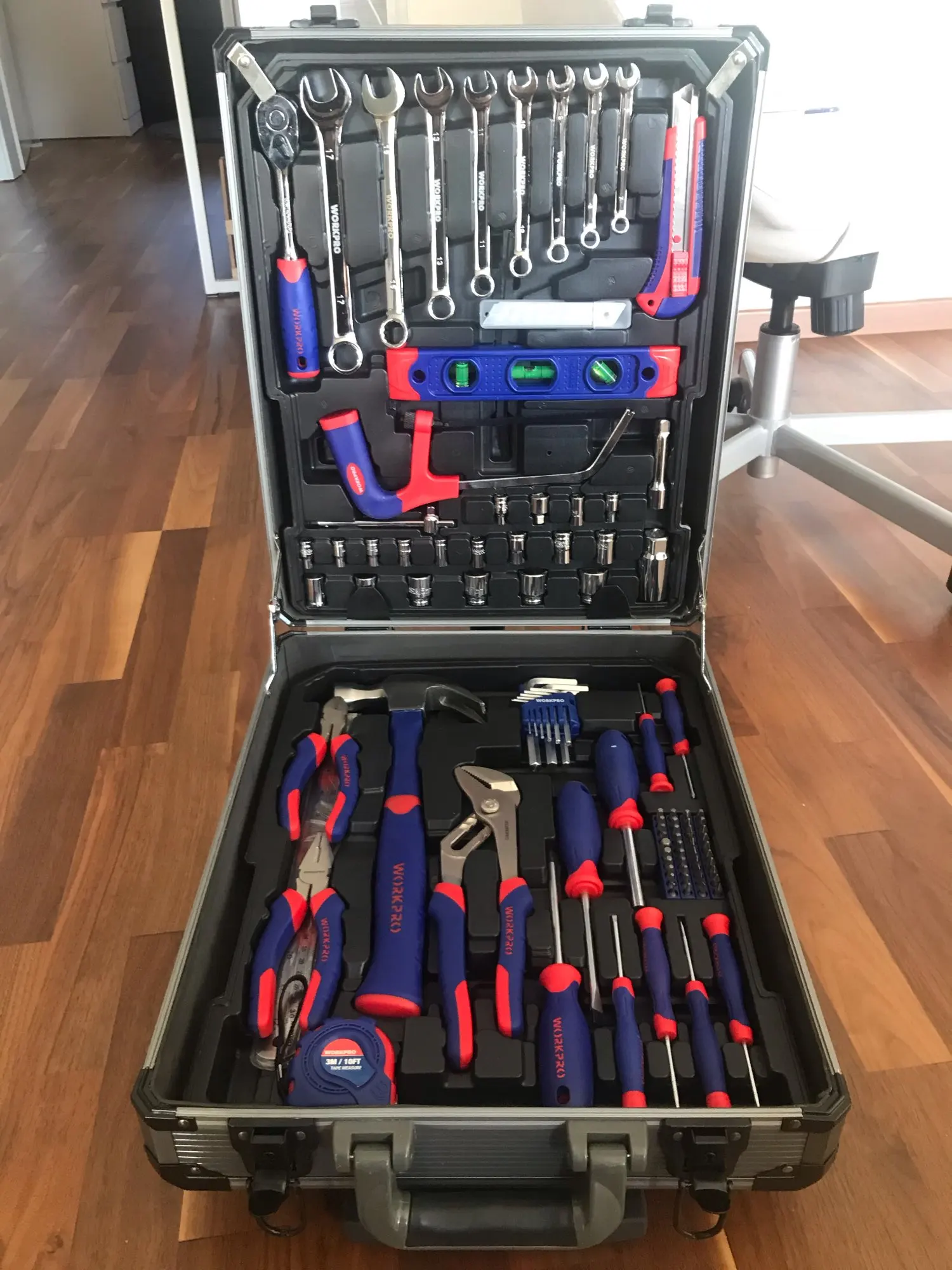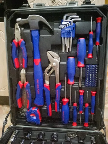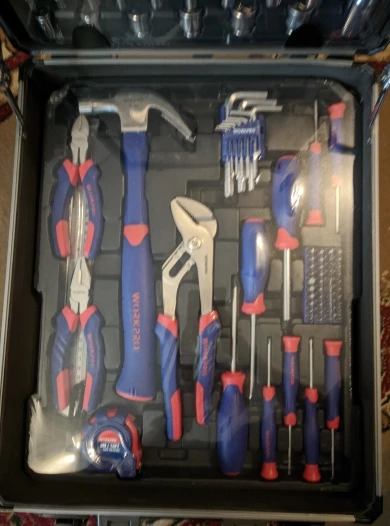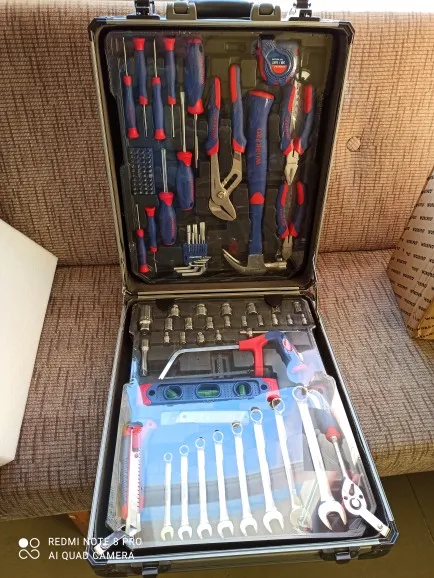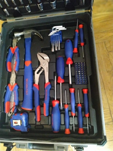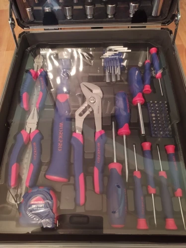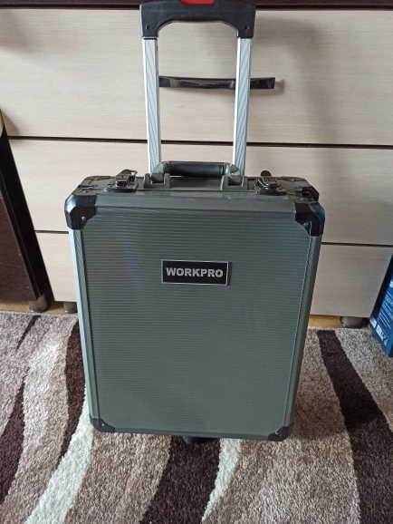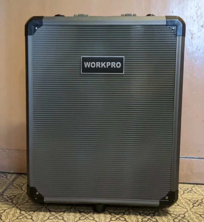 Большое спасибо Workpro за такой шикарный набор. Чемодан катается, ручка выдвигается, замки можно закрыть на ключ. Кусачками и пассатижами уже пользовался, для дома или редких работ пойдут, но не требуйте от них как от сверхдорогого инструмента. Вес набора почти 10кг