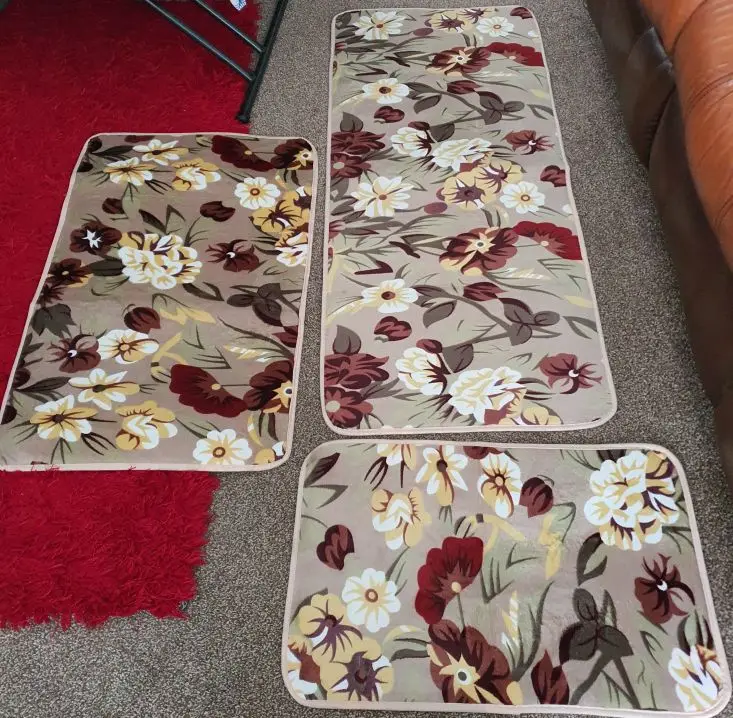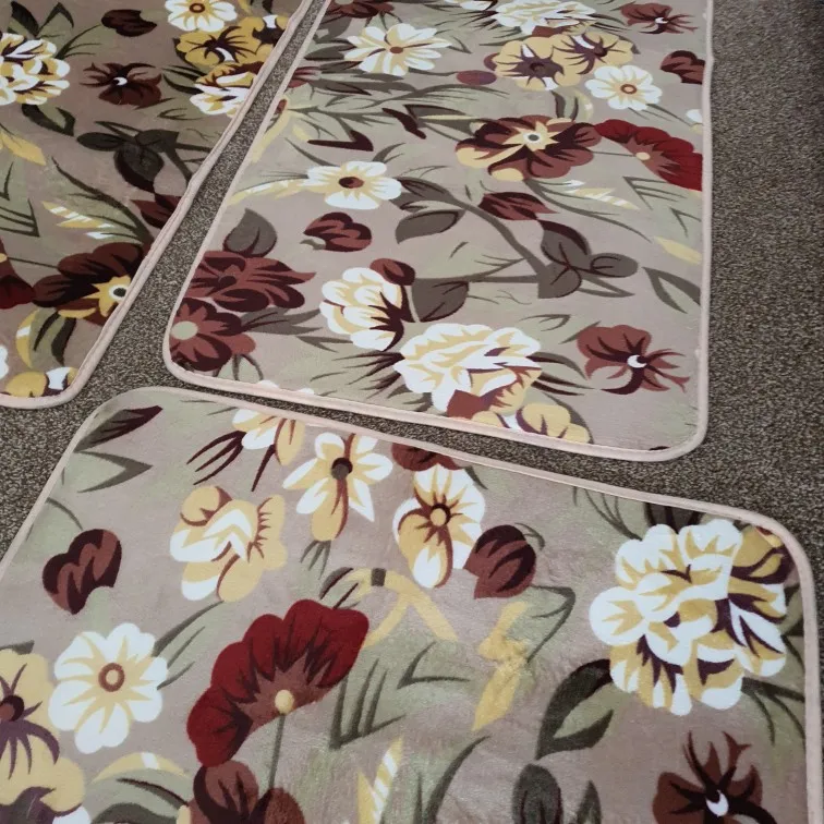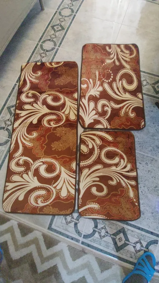 коврики отличные,мягкие,пришли очень быстро на удивление,заказано 2 набора по 3 шт,в каждом наборе подарочек -наклейка небольшая и красивая салфеточка золотая,очень приятно,продавец классный,рекомендую