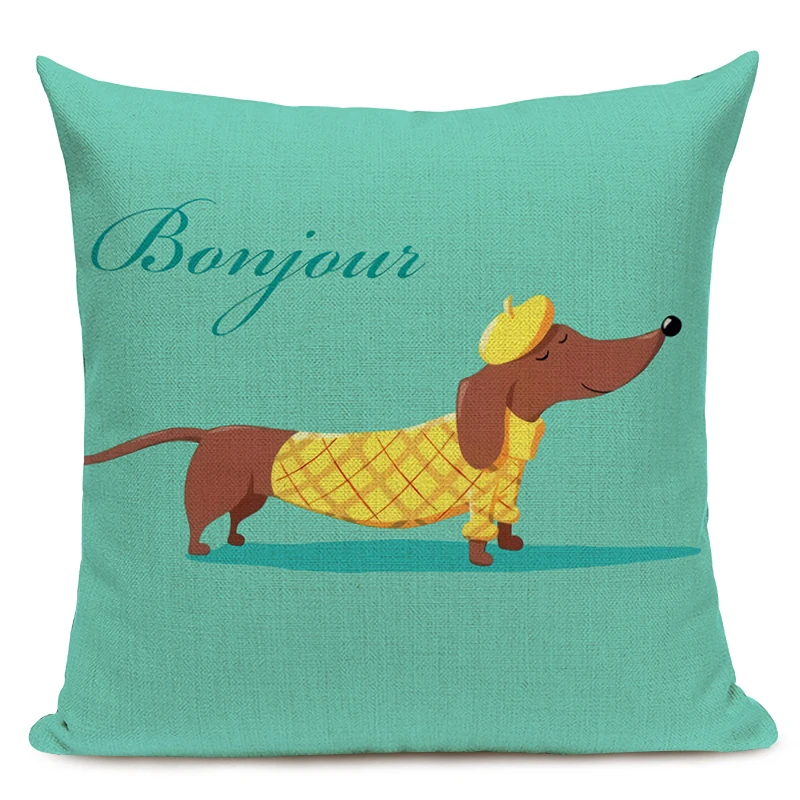 Наволочка для подушки с изображением Бультерьера, таксы, собаки, квадратная подушка из хлопка и льна с милыми животными для дома, дивана, спальни, декоративная подушка, чехол