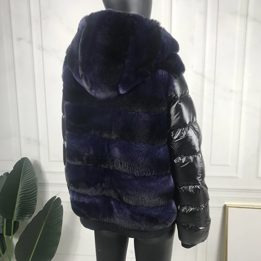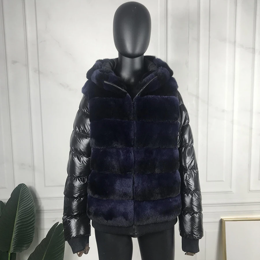 Натуральный короткая кролика рекс пальто с мехом женские зимние натуральный Меховая куртка с меховым капюшоном fanshion Новый пиджаки вниз рукава пальто спортивная