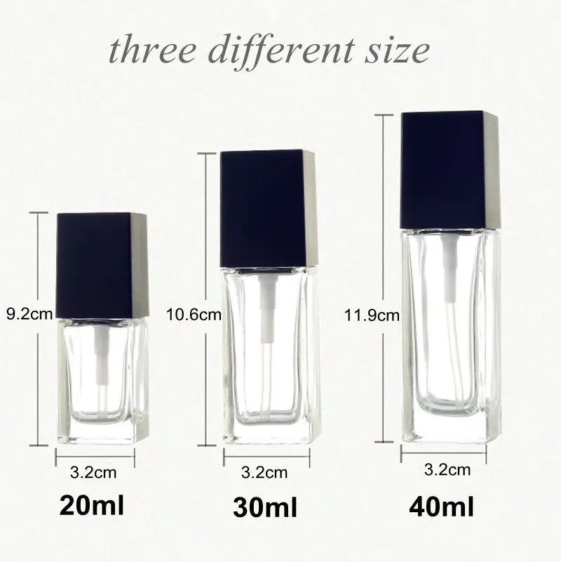 5 шт., прозрачная квадратная стеклянная бутылка для лосьона, 20 мл, 30 мл, 40 мл