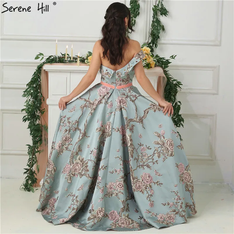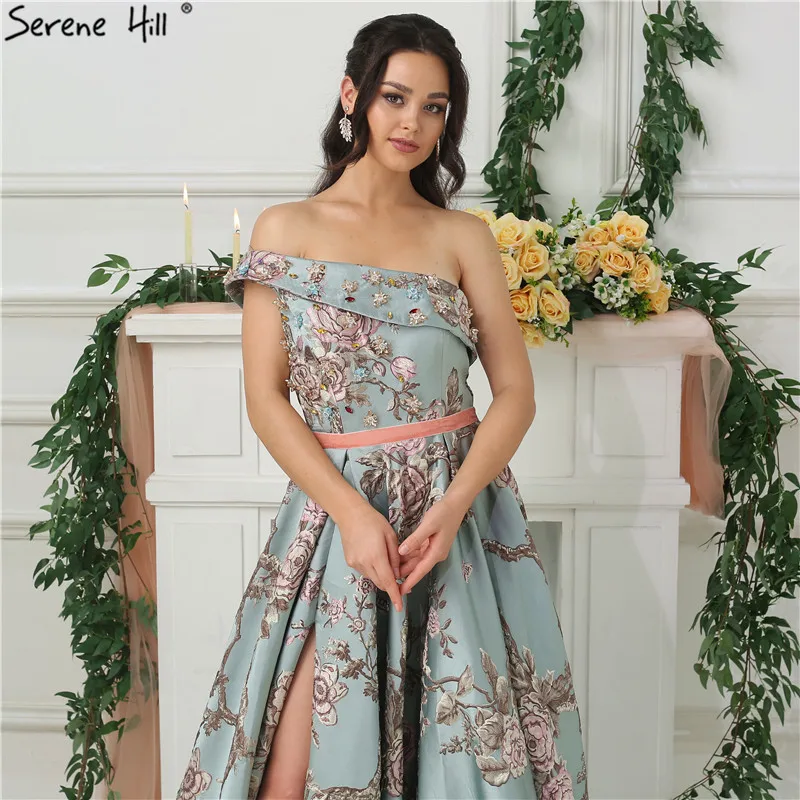 Элегантное вечернее платье с открытыми плечами и цветами ручной раб...