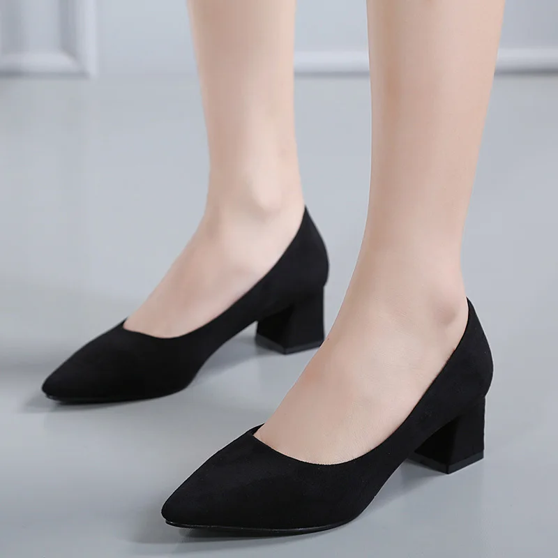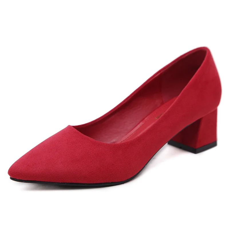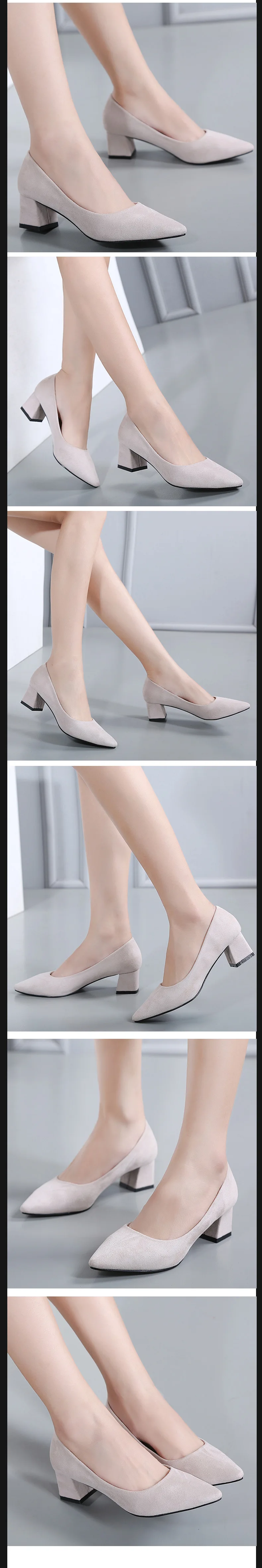 Туфли-лодочки из флока glglglgege, 5 цветов, с острым верхом, на ремешках, на среднем толстом каблуке, 2018