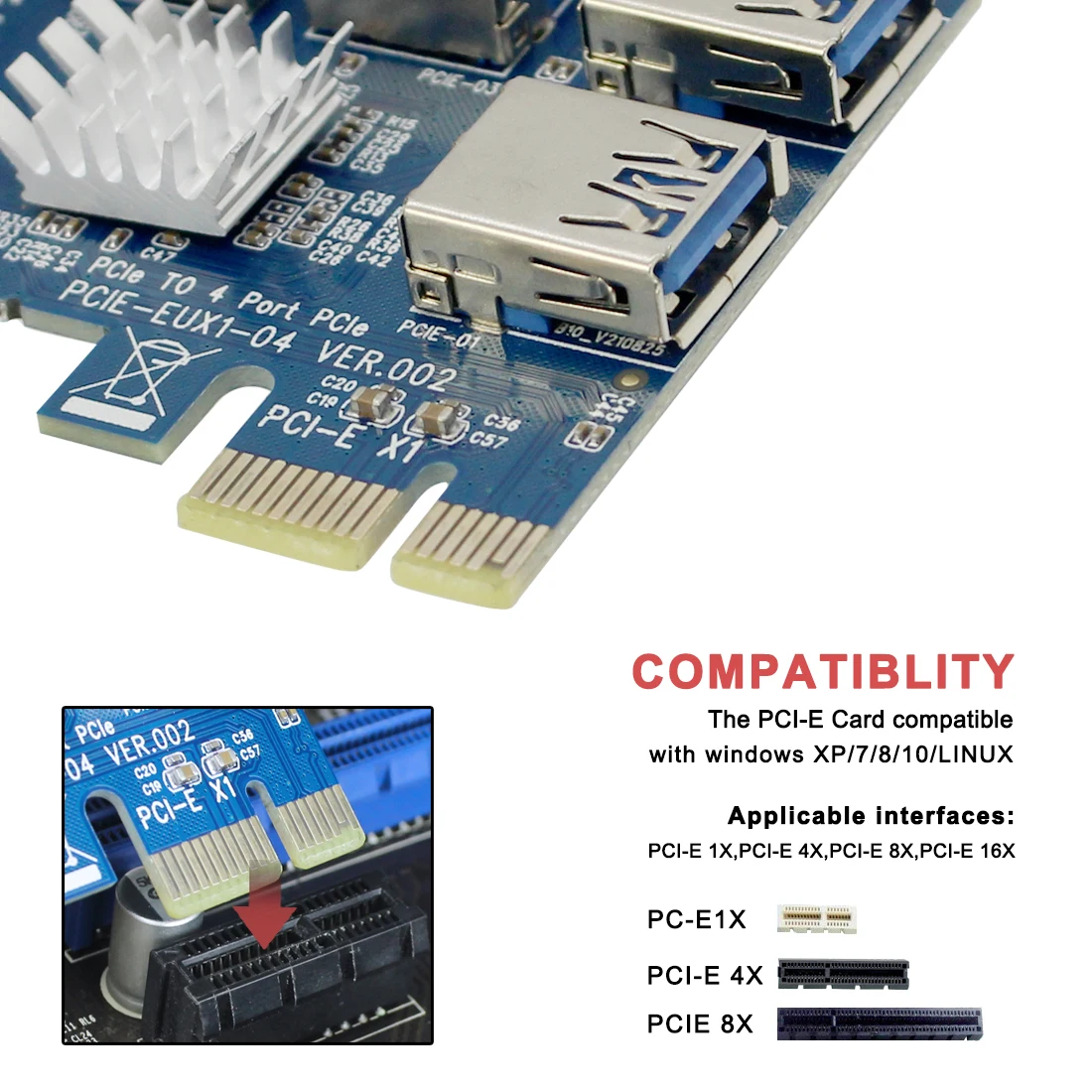 Переходник для Райзер-карты USB 3,0 PCI-E Express от 1x до 16x, переходник Pcie 1 до 4 USB, видеокарта для майнера BTC, Litcoin