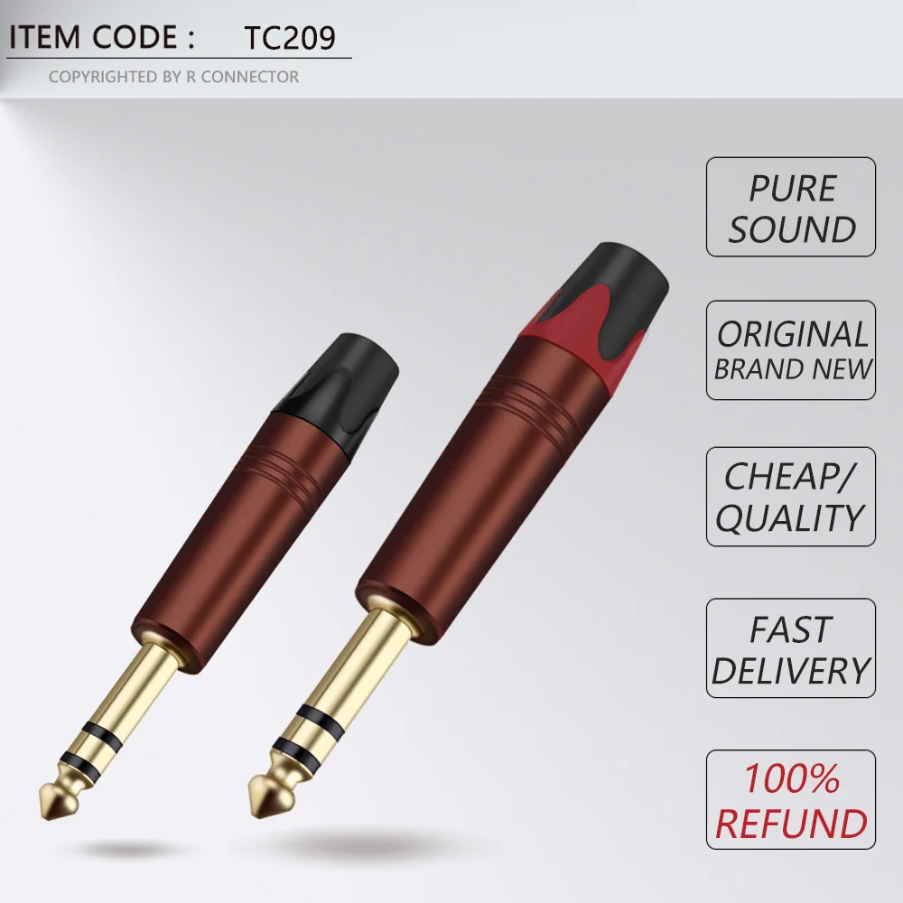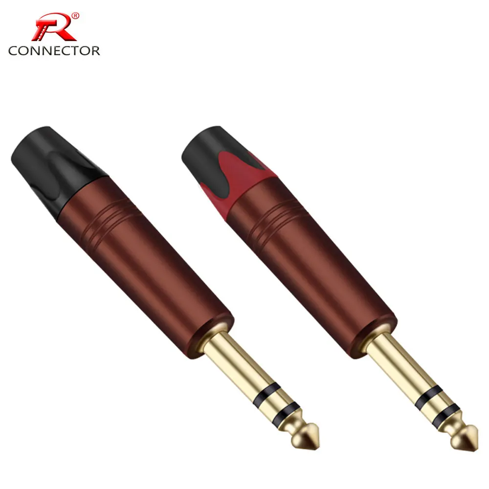 1/4 "6,35 мм Джек аудио разъем провода 3 палки стерео высокого качества металлический корпус + с позолотой 6,5 мм штекер + черного и красного цвета на хвост